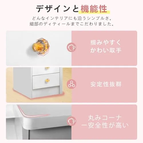 【スツール付きで便利】ドレッサーと同色のスツールがセットで、空間に調和之美しさ。スツールは高い耐久性を誇り、使用後はデスク下にスッキリ収納できるので、場所を取りません。ドレッサー椅子付きの完結セットで、届いたその日から、理想の化?コーナーが始められます