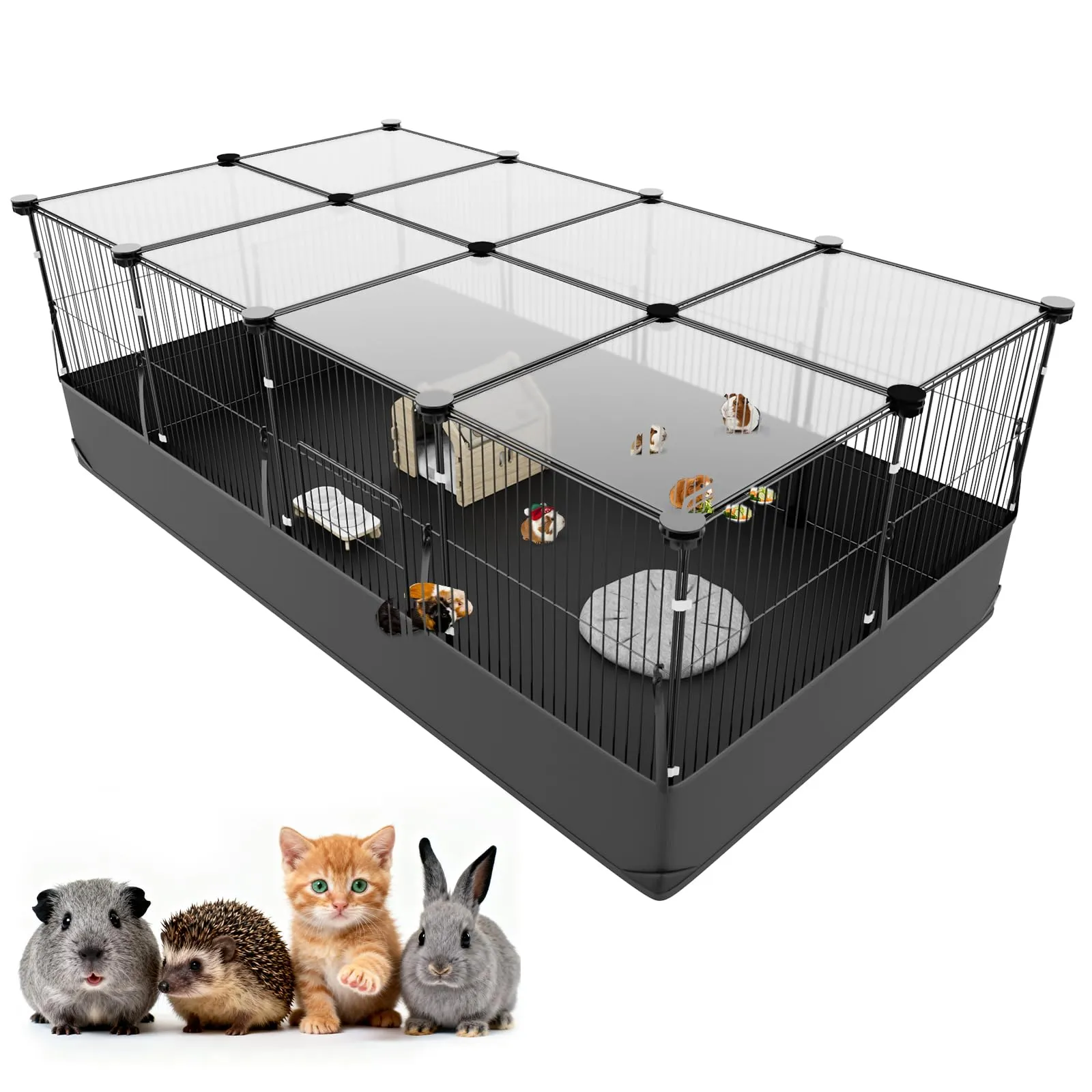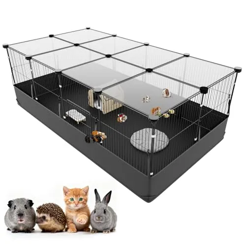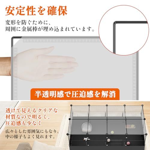 【多機能ペットハウス成長に合わせ快適空間】 小動物ゲージとして幼いウサギ、モルモット、ハムスター、チンチラなど、様々な小動物がのびのびと遊べる広々空間を実現します。室内外兼用で運動不足解消&ストレス軽減します。