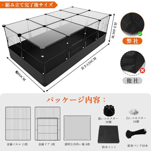 【仕様】金属パネル(幅30cm*高さ40cm)*11枚、透明な四角い板*8枚、金属ドア(幅30cm*高さ40cm)*1、枚、防水マット*1枚、黒いコネクター*24個、白いコネクター*24個、結束バンド*50本。