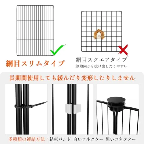 【1.6cm密目ネット足挟み防止の安全設計】 弊店のペットフのェンスは小動物専用に開発された超密目ネット(網の間隔が1.6cm)を採用され、黒色防錆コーティングで屋外使用も可能な耐久性がいいです。