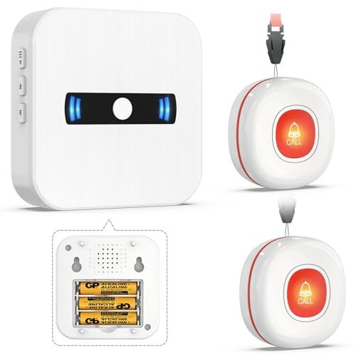 D★DAYTECH 呼び出しベル 介護 高齢者用 ナースコール 家庭用 ワイヤレスコールボタン 緊急ボタン 高齢者 介護用ブザー sos アラーム 無線 電池式 防水 呼び出しチャイム 呼び出し装置 2発送信機+1受信機 家庭/病院/老人ホーム対応 (赤色)