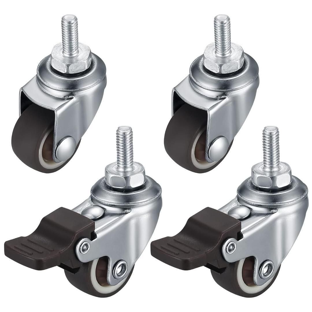 ネジ式 キャスター 360度回転 交換用キャスター M6ネジ ブレーキ付き 取替えキャスター 自在車キャスター 自在キャスター 静音 旋回車輪 置換 1インチ 4個セット