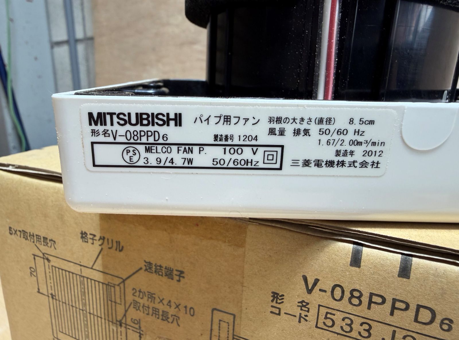 未使用 三菱電機 パイプファン 大風量タイプ V-08PPD6
