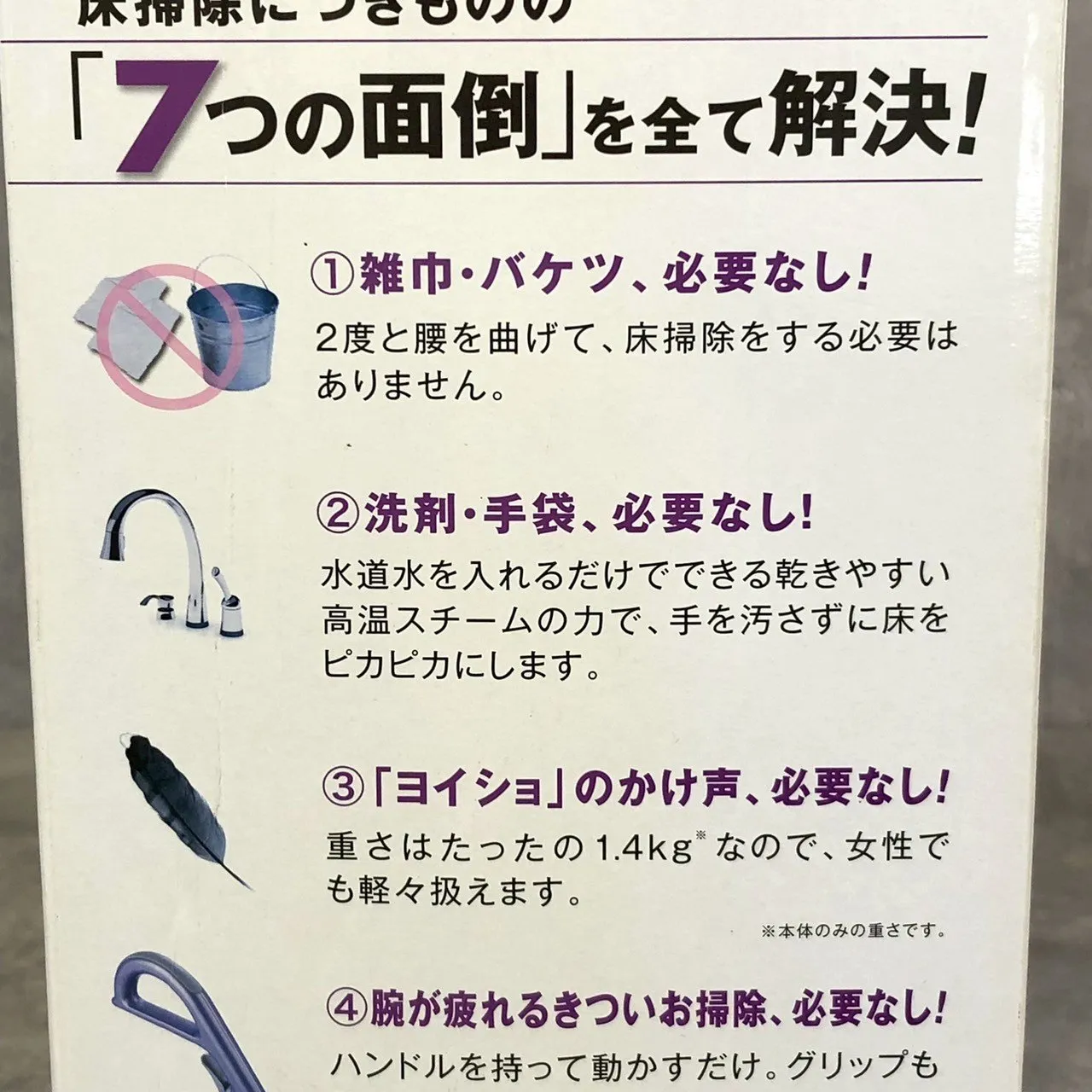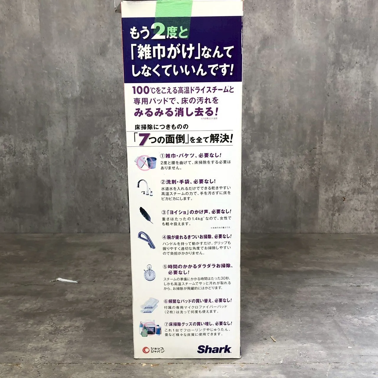 【備考】品番:FN001311 ・保証書等の付属品はありません。 ※購入後の保証やアフターサービス等の一切はお受け出来かねます。 写真や情報をお確かめいただき、状態をご理解の上、ご検討ください。 ショップジャパン取り扱いの Shark スチームモップ ベーシックです。 高温スチームで床の汚れを浮かせて拭き取ることができ、 フローリングやタイルなどの床掃除に便利。