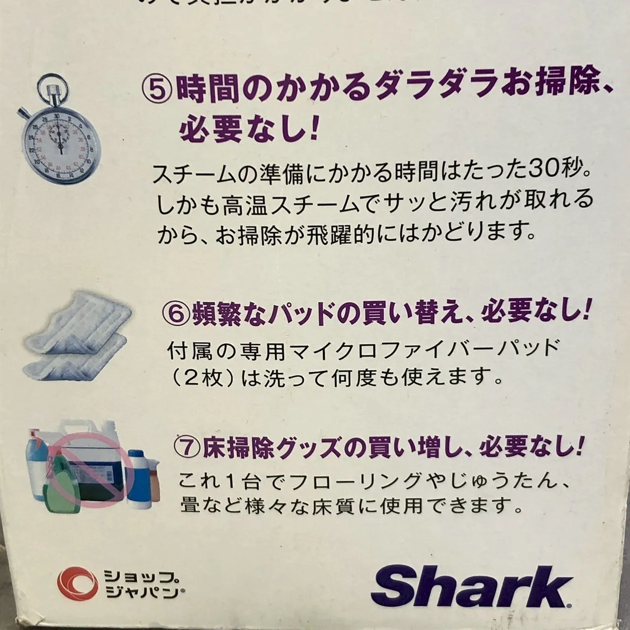 ショップジャパン シャーク Shark スチームモップ ベーシック マイクロファイバーパッド FN001311 紫 パープル