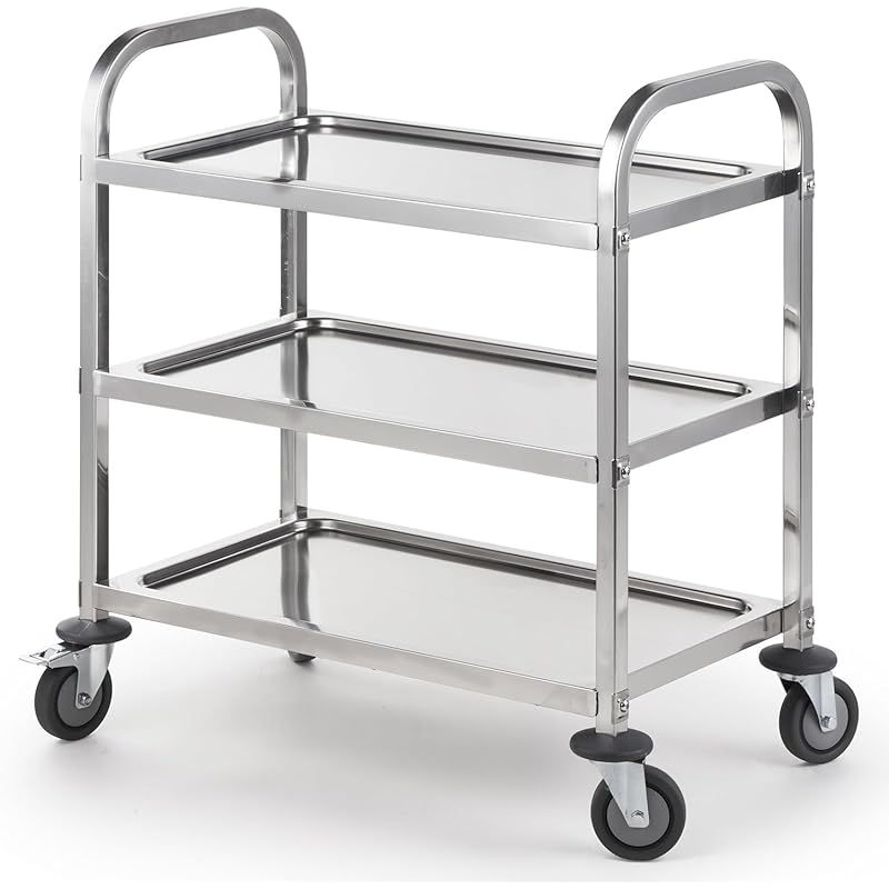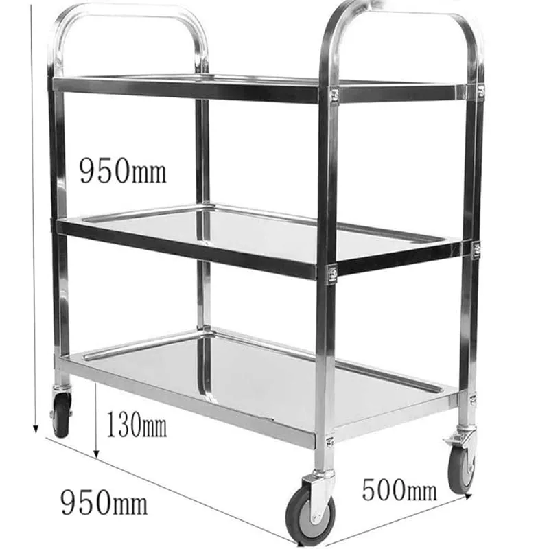 uyoyous キッチンワゴン キャスター付き 3段式 ステンレス製 収納ラック 配膳ワゴン 3段 95×95×50cm大判 サービスカート 配膳車 サービスワゴン ブレーキ付き 移動便利 業務用 レストラン ホテル 食堂など適用 キッチンラック 0