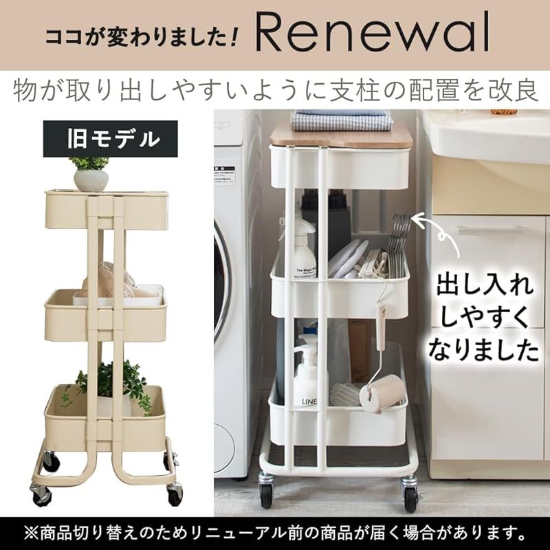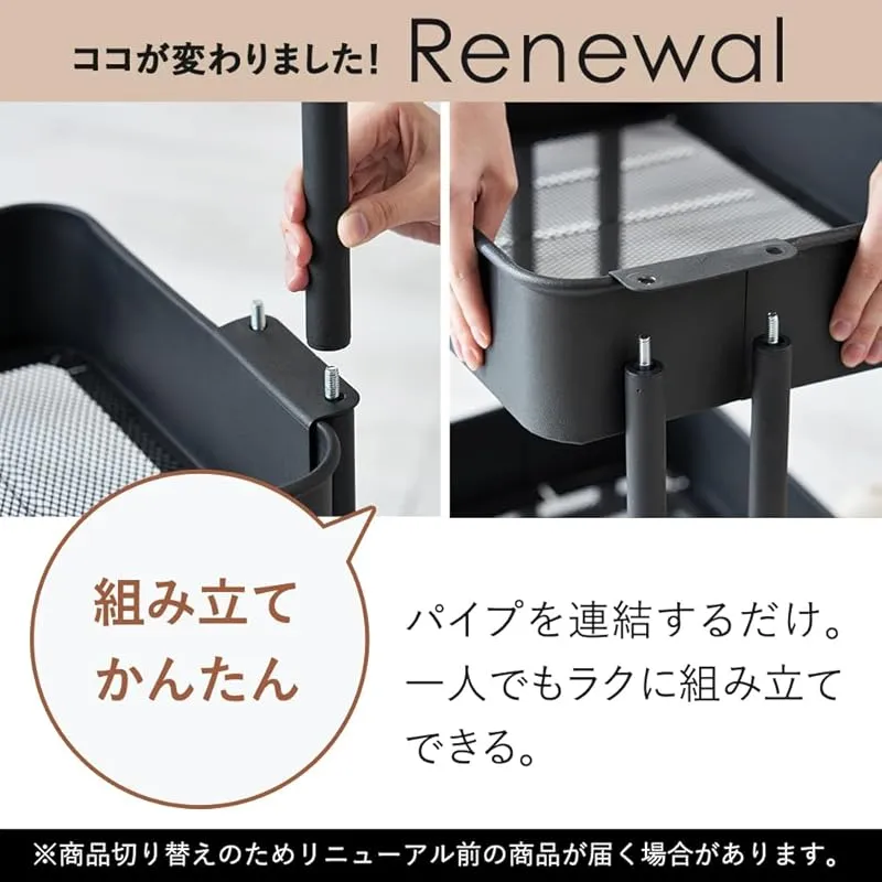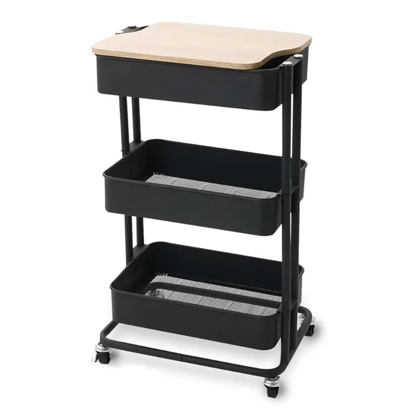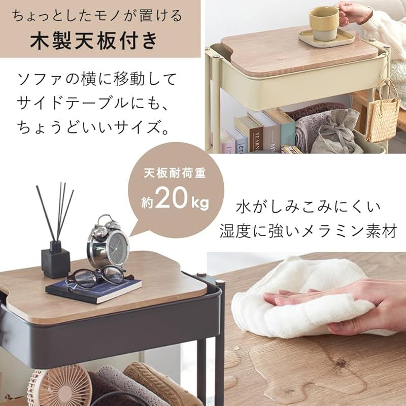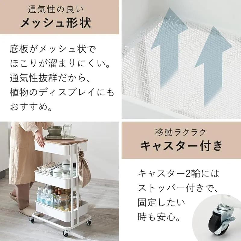 【取り出しやすくリニューアル! 】アイリスプラザ キッチンワゴン 調味料ラック バスケットラック 木天板タイプ 収納ワゴン 3段 キャスター付 幅44.5×奥行35×高さ78cm ブラック KW-L002 0