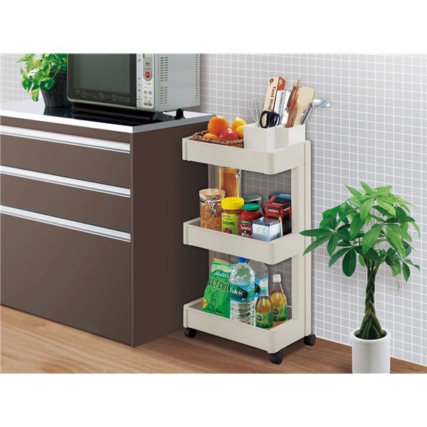 ■商品内容 開口部の広いスタイリッシュなオープンタイプワゴン! キッチンやリビング、寝室からランドリーまわりなど場所を選ばず様々なシーンで使い勝手抜群! 柱が片側のため壁につけてラックの代わりにもなる設計です。 工具不要で組み立て簡単です。 お手入れのしやすいプラスチック製です。
