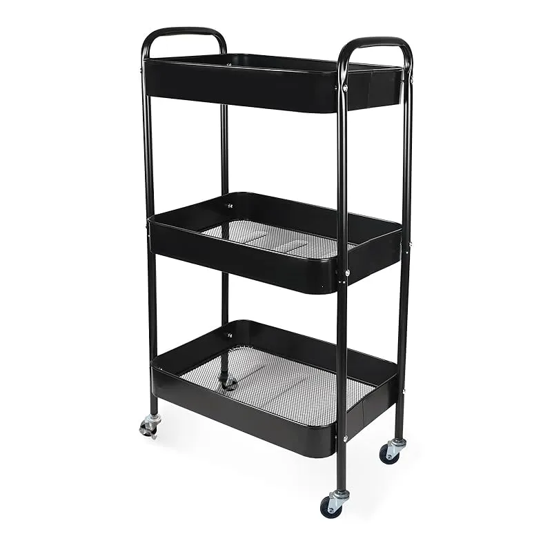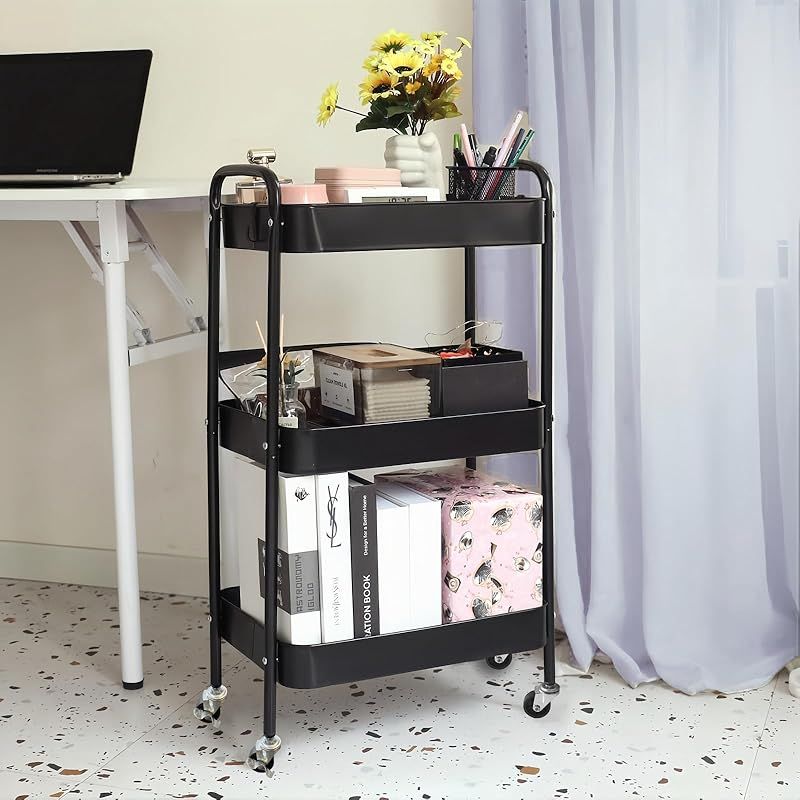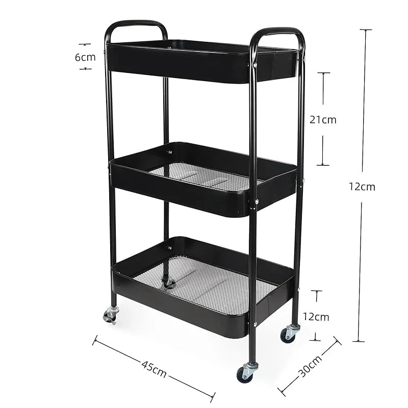 Ufriandz キッチンワゴン 収納ラック3段建て、移動実用カートは、キッチン、オフィス、寝室、ランドリー、狭いスペース, 収納ワゴン 簡単組み立て 黒 45×奥行30×高さ78cm 0