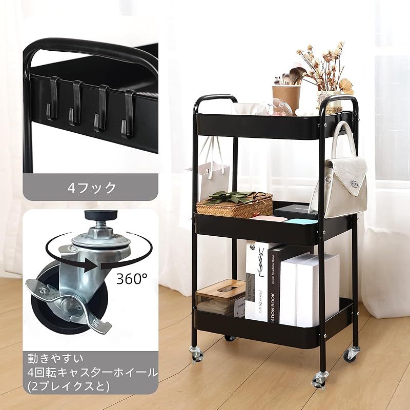 【様々な場所に対応 】ワゴン キャスター付き 3層 三段 ワゴン、収納ワゴン、キャスター付きラック ベッドルーム、日用品の収納には最適だと思います, 居間、子供部屋、キッチン等々に適します