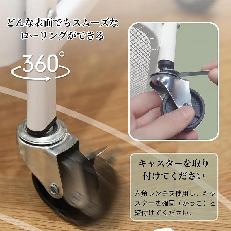 【キッチンワゴン】キャスター付きで移動便利、360度自由に回転することもでき、よりフレキシブルな方向を持っています。このキッチンワゴン スリムは床を傷つけることなく手軽にそして静かに動かすことができます。収納ラック 平らでない表面でもぐらぐら揺れませんので安心に使えます。ワゴン 収納 底板は穿孔設計を採用しており、風通しがよく、清潔さを保ちます。梅雨の時期や湿っぽいところでも安心