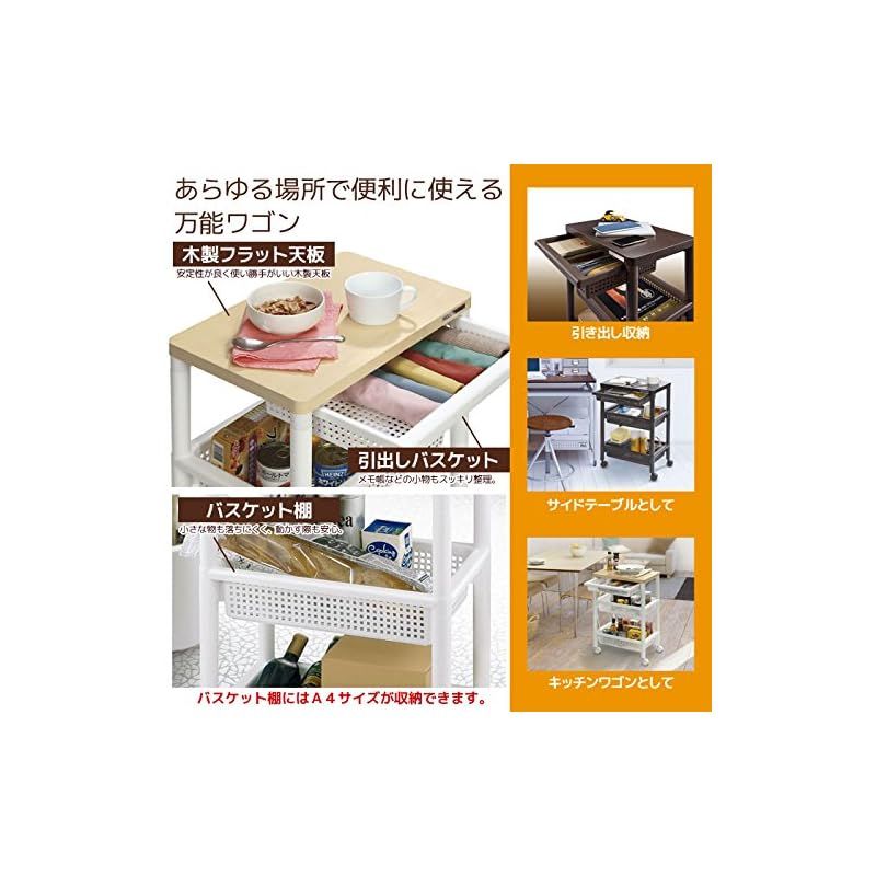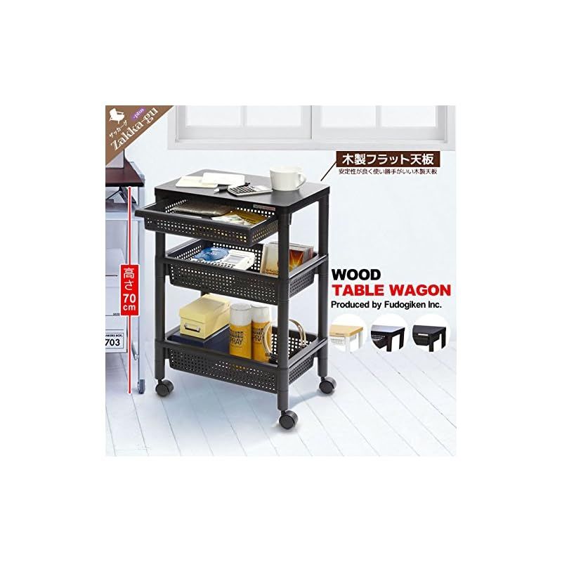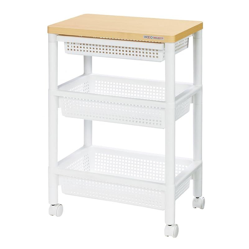 不動技研 ウッドテーブルワゴン WTW-3HS 引き出しバスケット付 ホワイト F2491 0