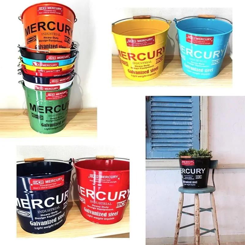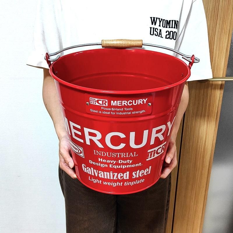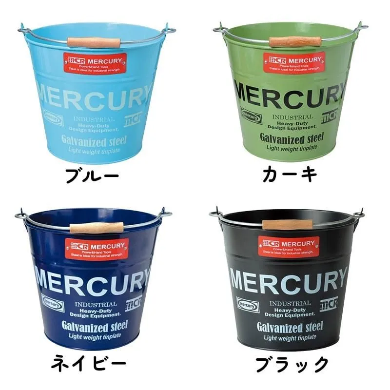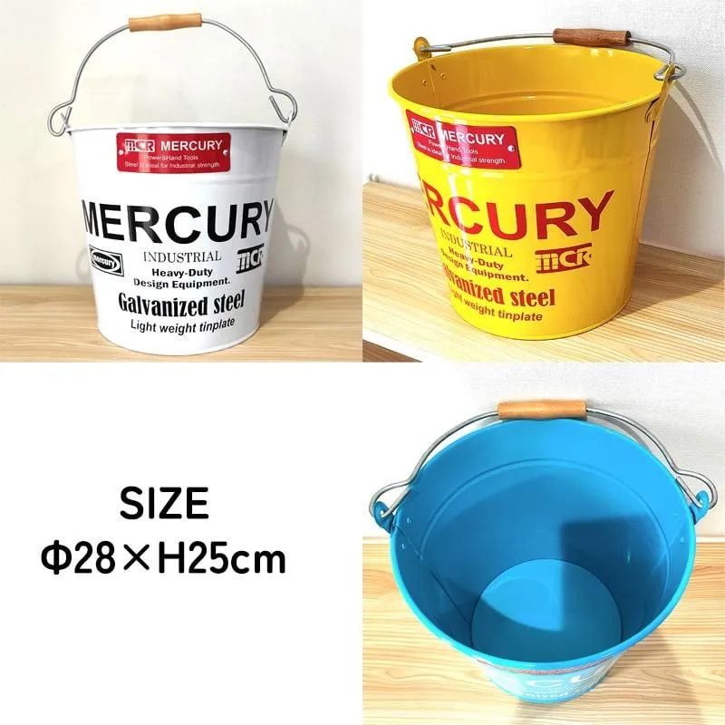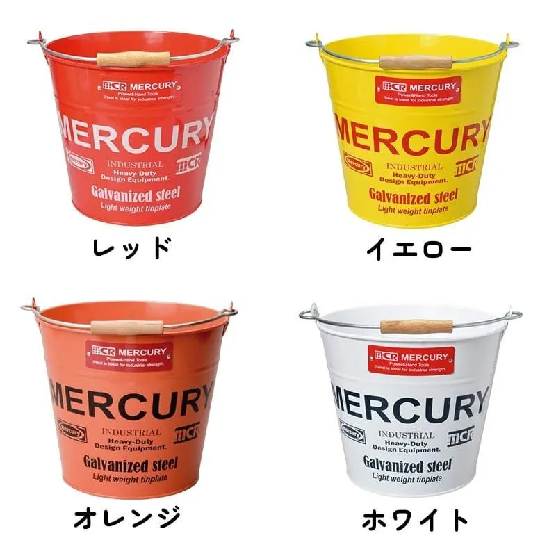マーキュリー バケツ 収納 おしゃれ アメリカン 雑貨 ガレージ 選べる レッド イエロー オレンジ ホワイト ブルー カーキ ネイビー ブラック MERCURY ロゴ 鉢植え ブリキ 頑丈 メンズ インテリア 小物入れ 可愛い