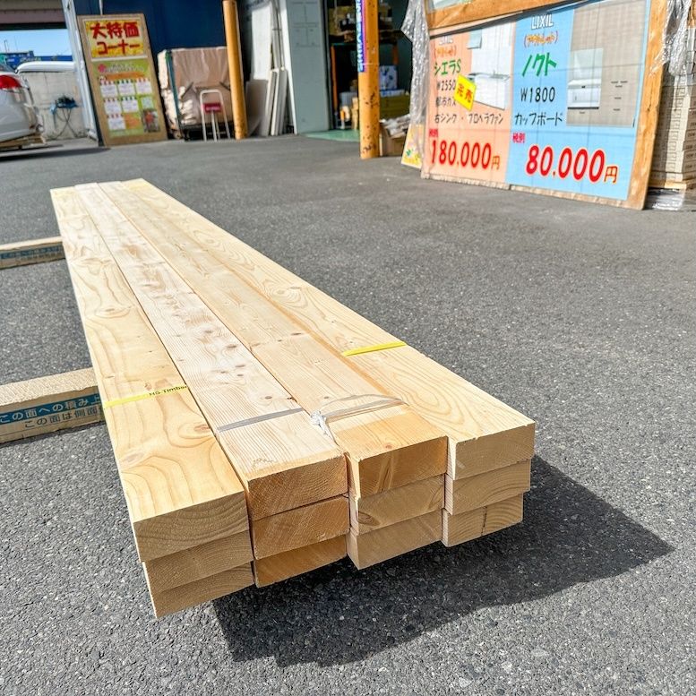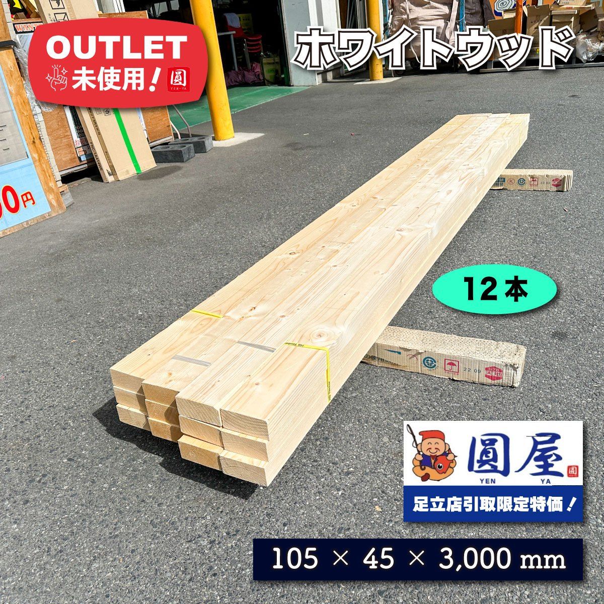 《東京足立店引取り限定特価》ホワイトウッド 角材 105×45×3000mm 12本セット【未使用アウトレット品】
