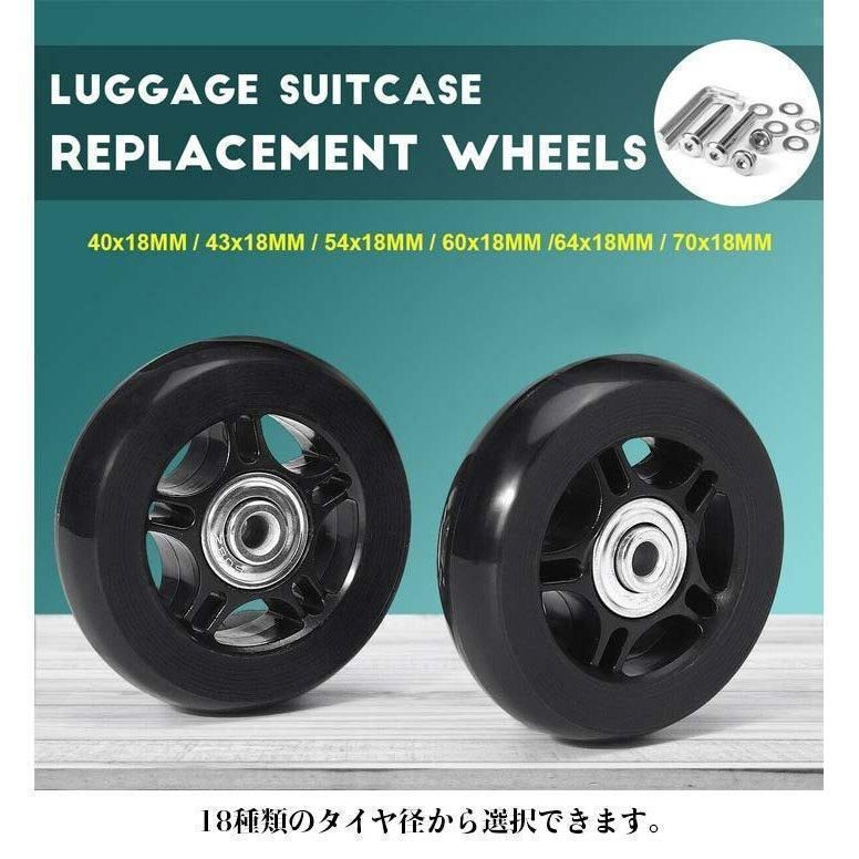 キャスター 交換 2輪 40/43/45/50/54/60/64/68/70/72/76/78/80/84/87/90mm キャリーバッグ スーツケー