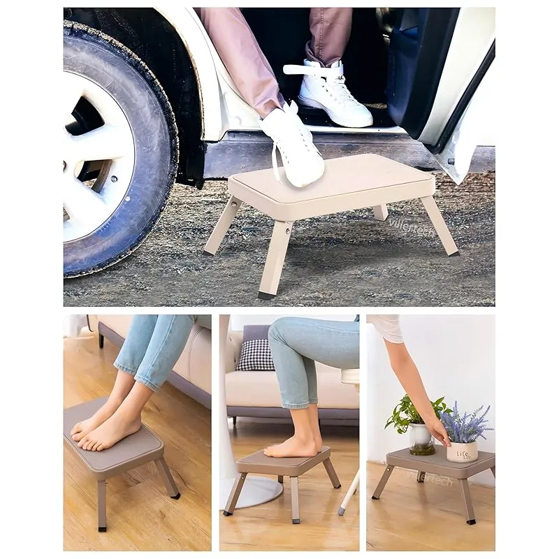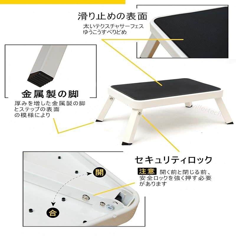 villertech 踏み台 折りたたみ ステップ台 車 踏み台 車の乗り降り 滑り止め コンパクト 省スペース 足台 一段 折り畳み おしゃれ 軽量 収納 キッチン トイレ 洗車 耐荷重120kg 高さ18cm 金属 オフホワイト 0