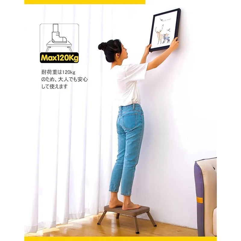 【商品概要】 サイズ:幅46×奥行28×高さ18cm、折りたたみサイズ:幅38×奥行26×高さ3.5cm、座面サイズ:横38x縦26cm 安全性の向上:厚みを増した金属製の脚とステップの表面の模様により、ステップ台はより高い支持力と摩擦力を持ち、耐荷重は120kgです。グリップが床にしっかりフィット、滑り止め効果あり、ぐらつきにくく、床の傷防止にも。 折りたたみ式用の丈夫な附属品付き。 デザインアップグレード:薄型のデザインにより、折りたたんで収納した時の厚さはわずか3.5cmとなり、省スペースで、隙間に収納できる踏み台です。 バージョンアップしたステップスツールは、カラーバリエーションも豊富になりました。 利便性の向上:重量は1.96kgと軽量で、持ち運びにも便利です。 新開発のスプリングにより開閉が容易で、脚部にはロック機能付き、合金製のボタンをしっかりと押すことで、スツールを素早く折り畳むことができます。 多機能踏み台:ワイドなステップ面で、安定感があります。 玄関ステップ、車の乗り降り踏み台、トイレ踏み台、オフィスデスクやソファーの足置き、観葉植物置き台など様々なところでも大活躍。 製品は出荷前検査を行います。部品などの破損がありましたらメールにてご連絡ください。営業日の場合、24時間以内にご対応いたします。