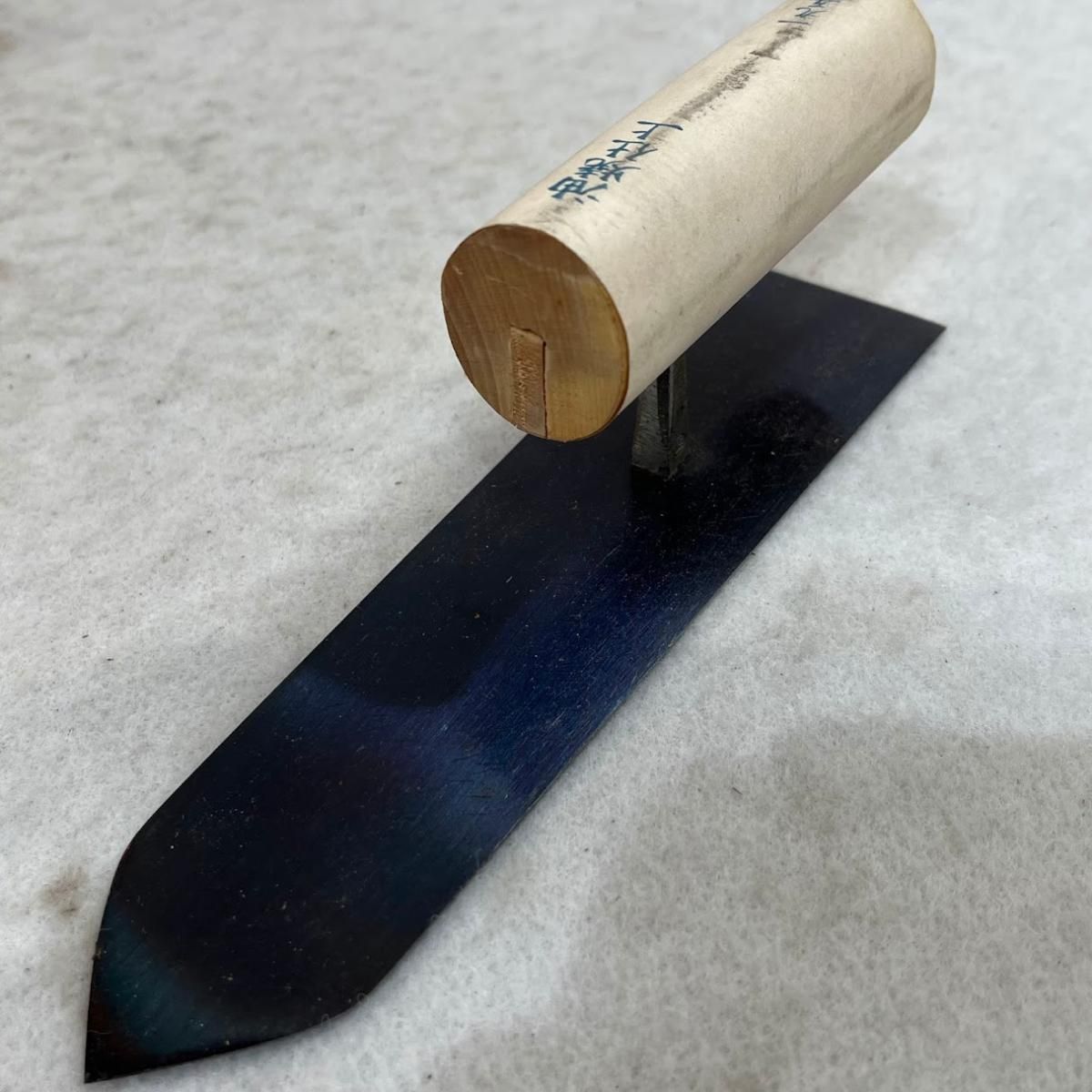 サイズ(cm) 鏝長195㎜幅10~52㎜ ハンドル長103㎜ 鏝厚0.8㎜
