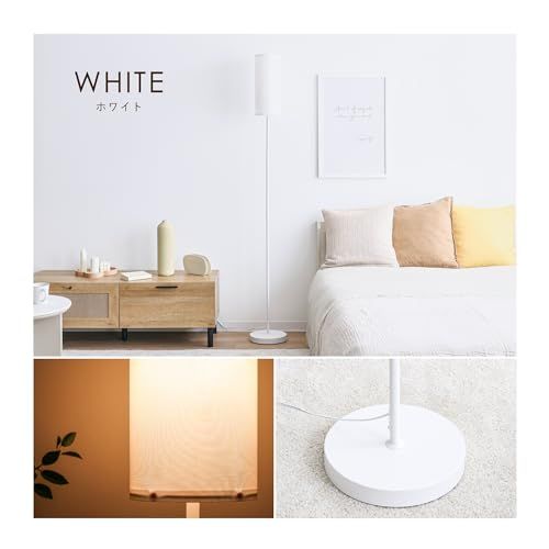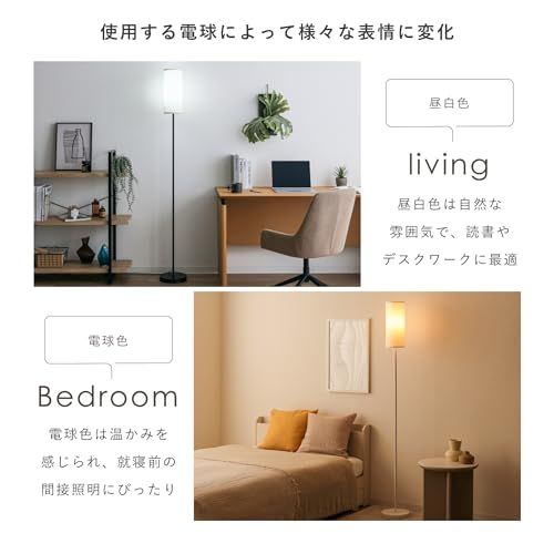 【周りの壁を優しく照らして温もりのあるお部屋に】ファブリックのシェードが柔らかな光を拡散させ、心地よい雰囲気を演出します。ファブリック面や上部から溢れ出た光が、壁や周囲を優しく照らし夜の読書やくつろぎの時間に最適。おうちでのリラックスしたい時に欠かせないフロアライト。
