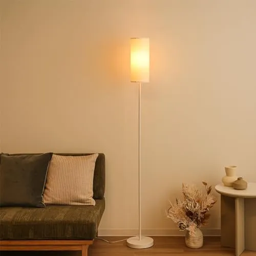 【柔らかい雰囲気を漂わせるシンプルデザイン】ファブリック製のシェードとスチール製の細いシルエットのスタンドライトでワンランク上のおしゃれなお部屋に早変わり。シェードは上と下が空洞になっており、溢れ出た電球の光が優しくお部屋を照らします。