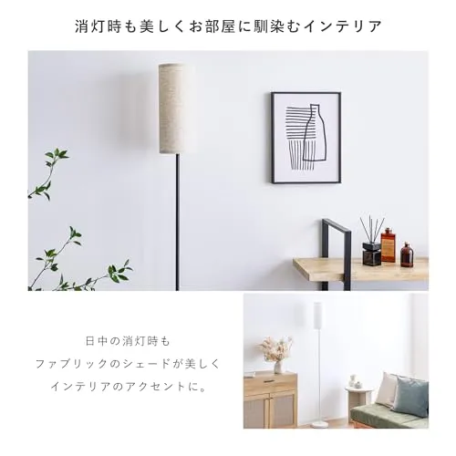 【消灯時も美しくお部屋に馴染むインテリア】日中の消灯時もファブリック素材のシェードが美しくインテリアの主役としてアクセントになるフロアライト。
