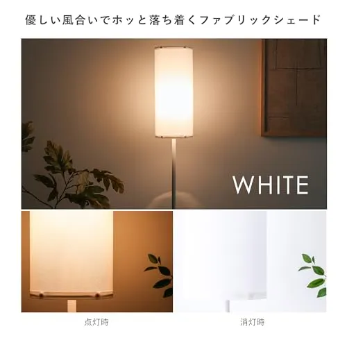 【優しい風合いでホッと落ち着くファブリックシェード】シェードはファブリック素材を使用。ファブリックシェードに包まれた柔らかい電球の灯りがお部屋をやさしく照らします。点灯時はもちろん、消灯時のブラックとホワイトのそれぞれのファブリック素材のシェードのカラーをお楽しみいただけます。