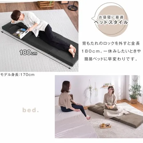 D★タンスのゲン ソファーベッド 3WAY 1人掛け 幅60cm クッション付き 座椅子ソファー フロアソファー 座椅子 ロータイプ ソファ 15210053(117422)