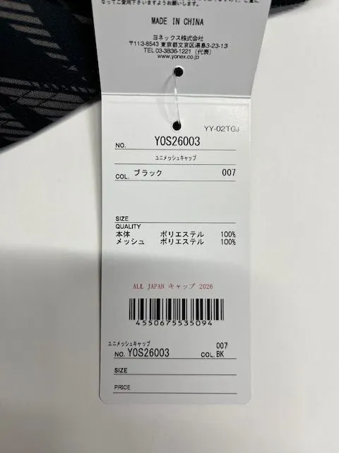 新品 限定商品 2026年 ヨネックス yonex YONEX メッシュキャップ オールジャパン ALL JAPAN YOS26003-007