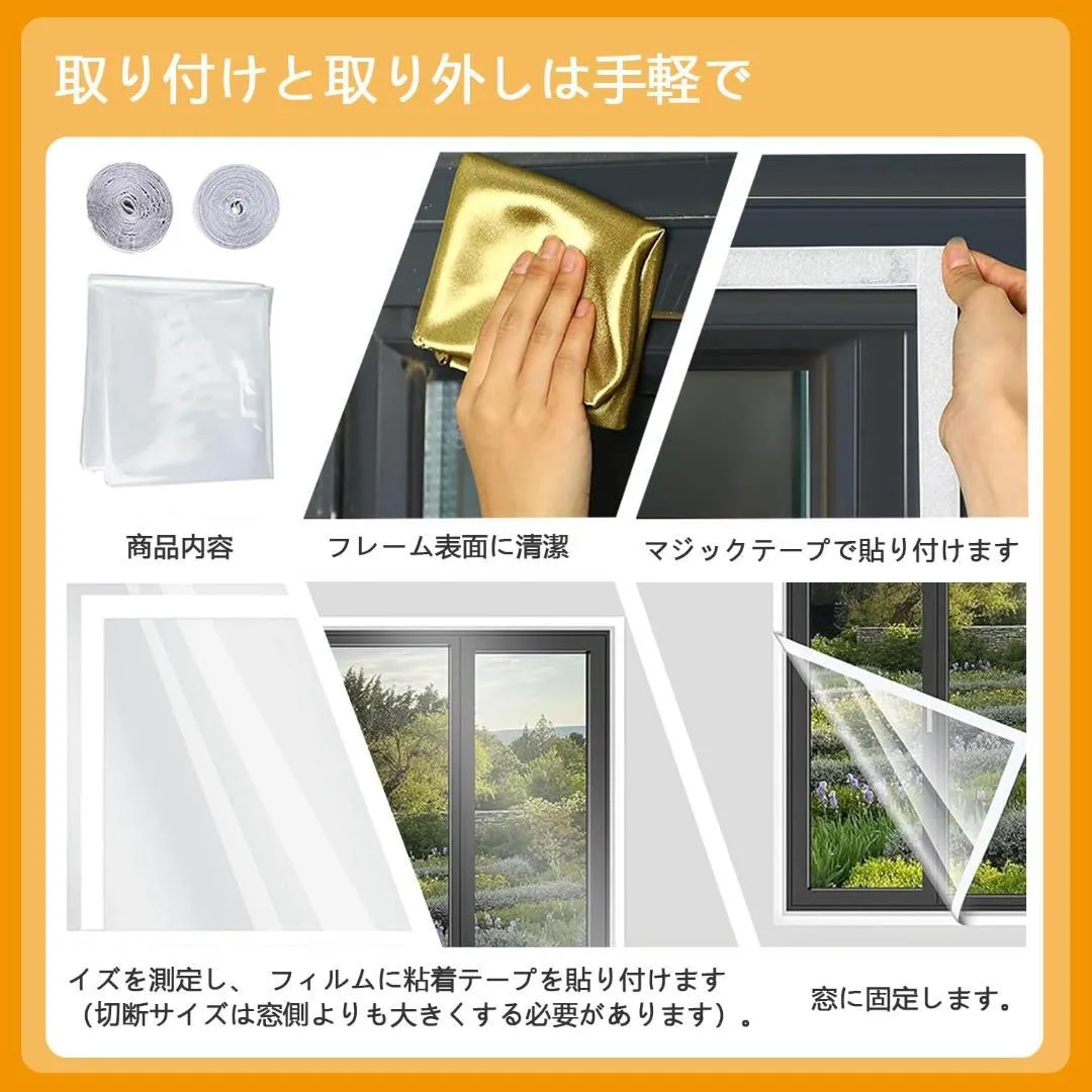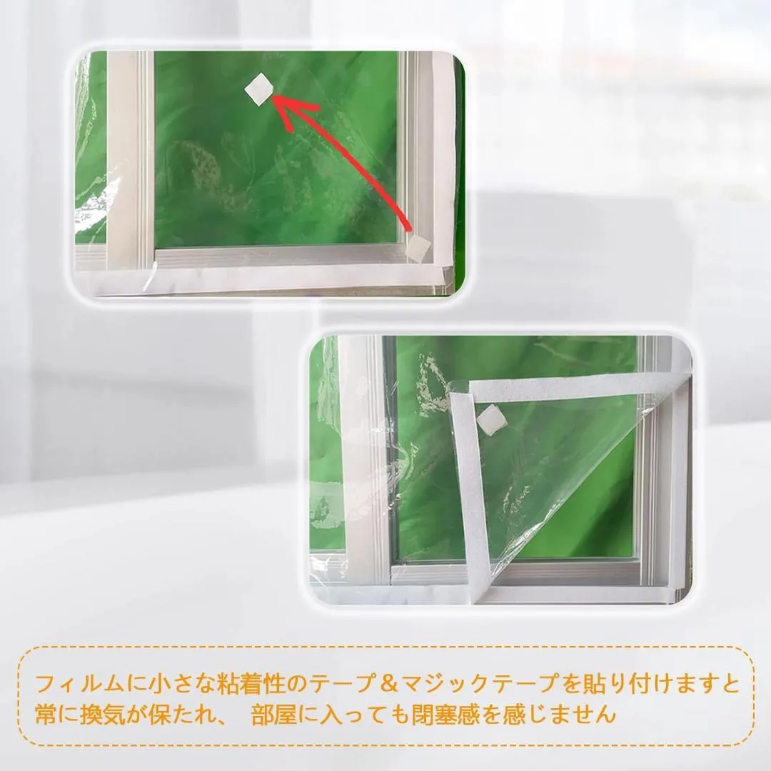 120 x 200 cmが1枚と、2cm幅のフックアンドループテープが2巻入っており、ほとんどの窓サイズに適応します。粘着テープは幅広く、粘着力が強く、安定した使用感と耐久性を提供します。