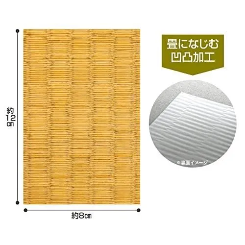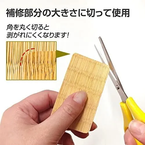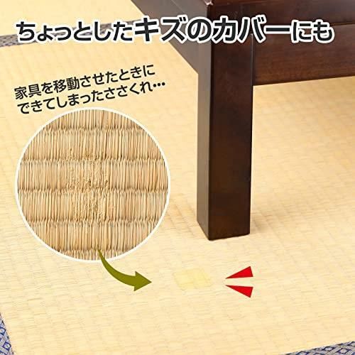 【仕様:4枚入】製造国:日本 畳の焦げや傷を貼るだけで簡単に補修できるシール。 凹凸加工が施されたているためなじみます。 補修部分の大きさに切って使用可能。 4枚入り。 仕様/4枚入 サイズ/約12×8cm 個装サイズ/約15×9×0.2cm 個装重量/14g 素材・材質/ラベル:合成紙 粘着剤:アクリル系 剥離紙:紙 製造国/日本