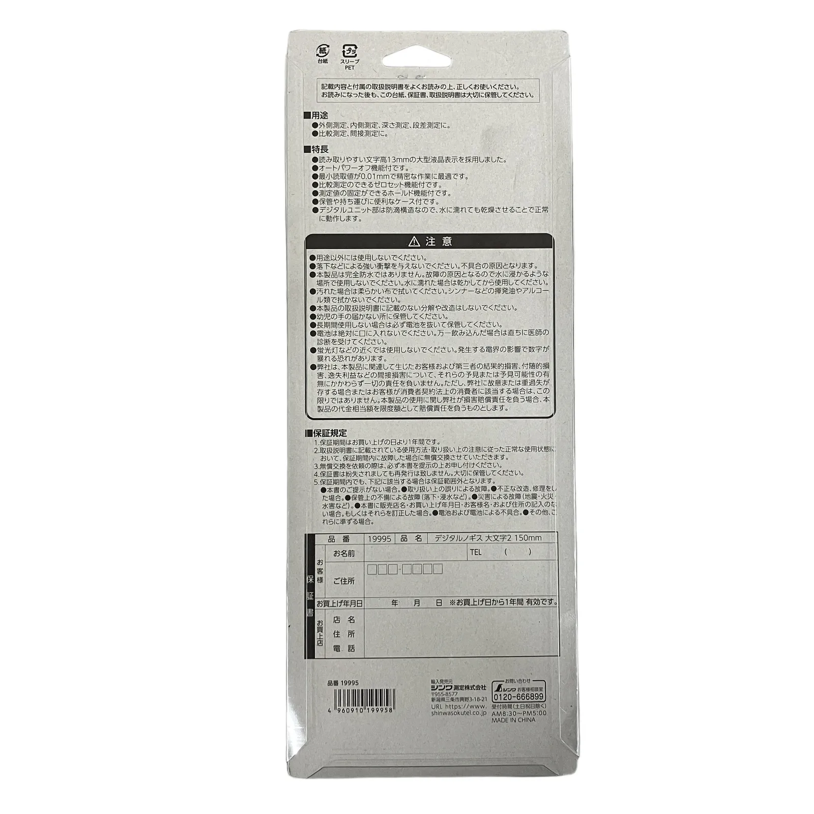 こちらは「シンワ 19995 デジタルノギス 大文字2 150mm 文字高13mm 未使用 」でございます。