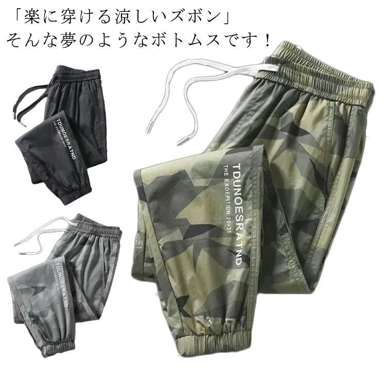 スキニーパンツ メンズ 迷彩柄 冷感パンツ アイスシルク 接触冷感 ひんやり 涼しい ロングパンツ イージーパンツ 薄手 ゴルフパンツ ストレッチ 伸縮 長ズボン 通気 速乾 スポーツ M〜5XL