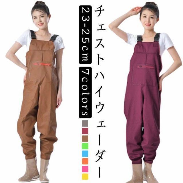 フィッシングウェーダー チェストハイウェーダー レディース 胴付き長靴 女性用 チェストハイ 胴長 ウェダー 防水 釣り用 水中作業 作業靴 作業用 水仕事 掃除 農作業 漁業 潮干狩り 除雪 雪かき
