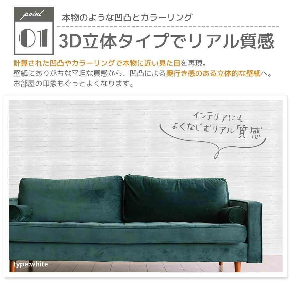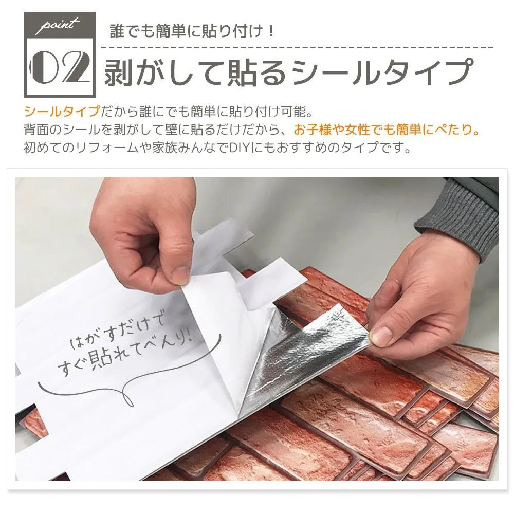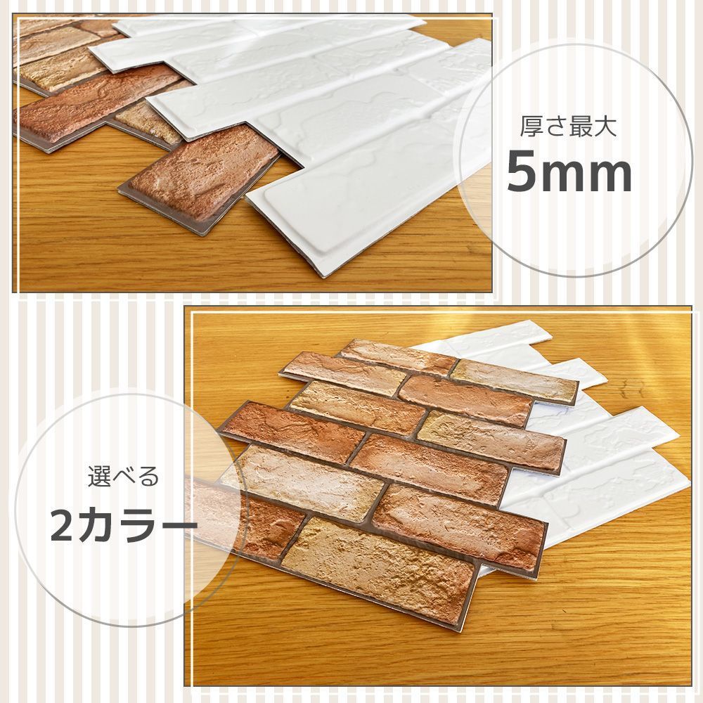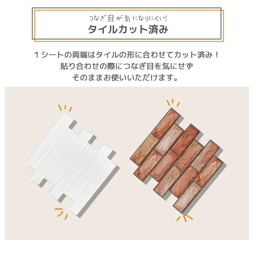 壁紙シール レンガ 3D 立体 レンガ調 タイル 白 ブラウン 30cm×30cm 10枚セット のり付き シート おしゃれ 北欧 パネル キズ隠し 汚れ防止 DIY リフォーム クッション シンプル ウォールステッカー 初心者 安心