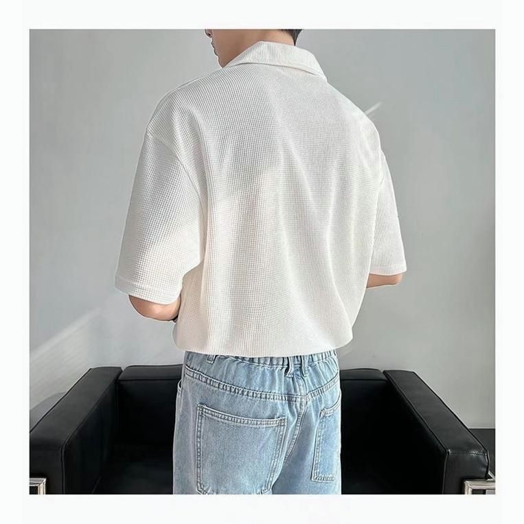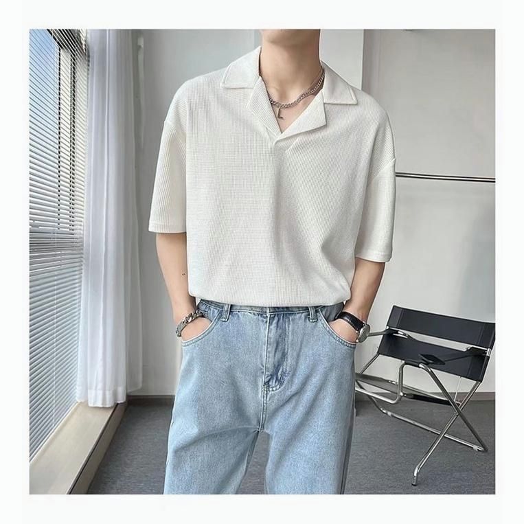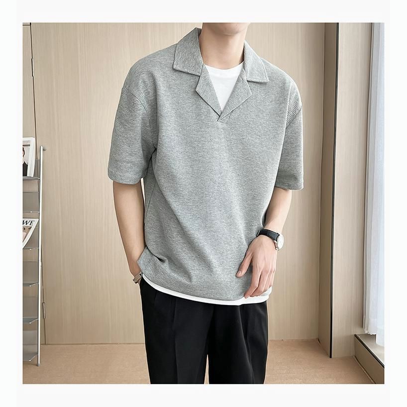 【特徴】 ・カジュアルな半袖ポロシャツ ・薄手ニット素材で涼しい ・ゆったりとしたシルエット ・キレイめなデザイン ・レイヤードに最適 ・無地でシンプル
