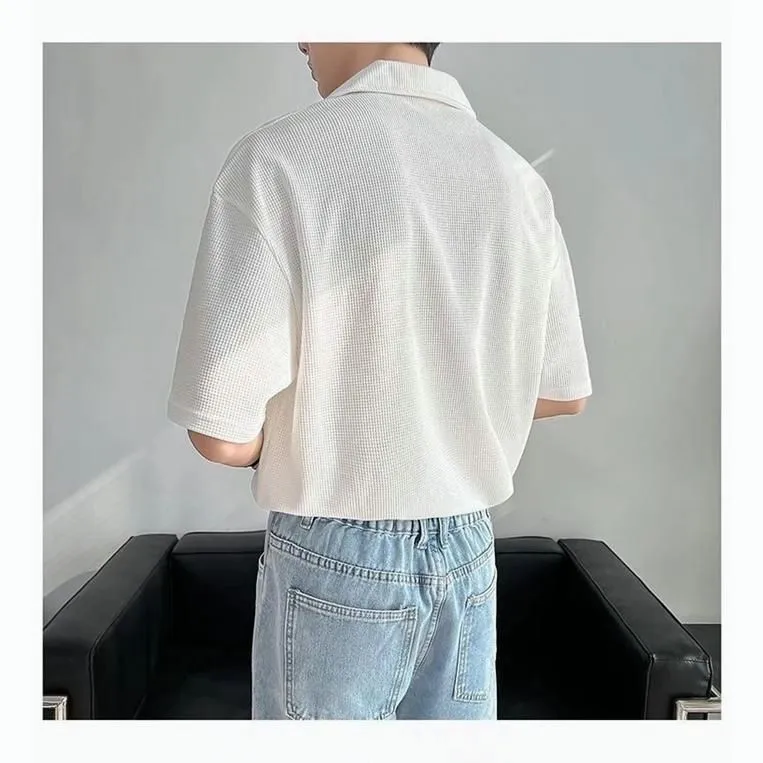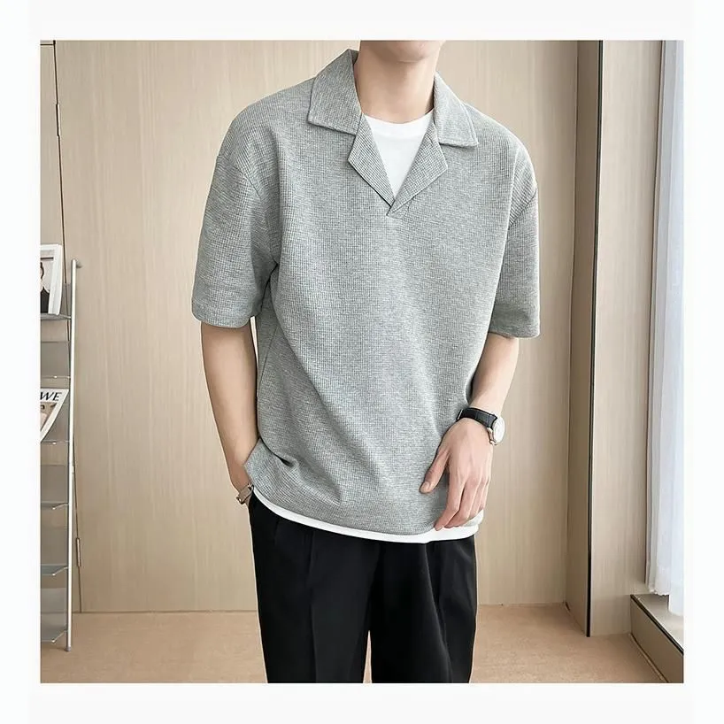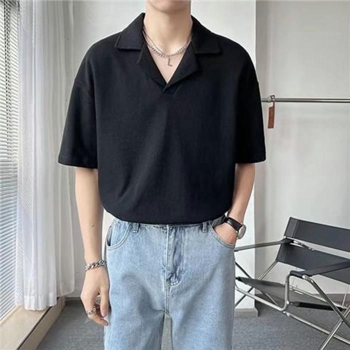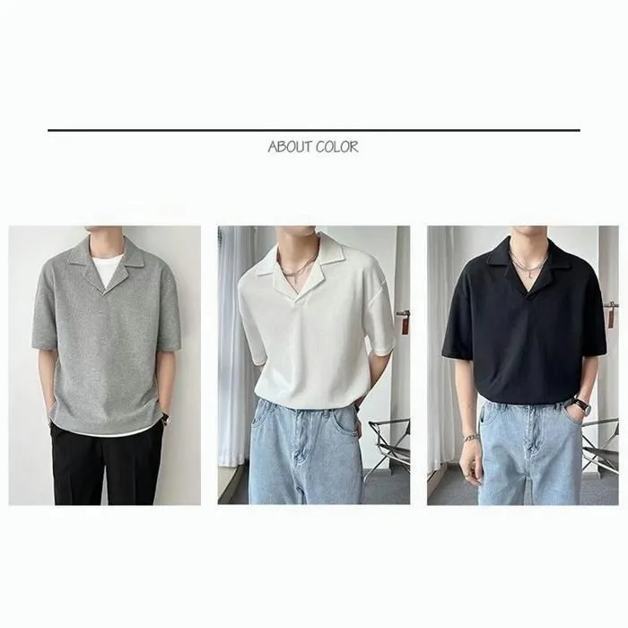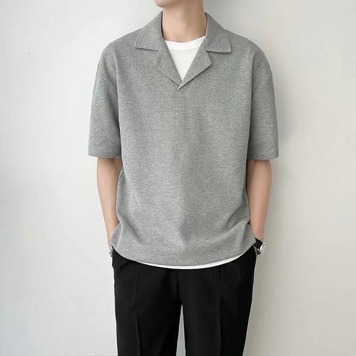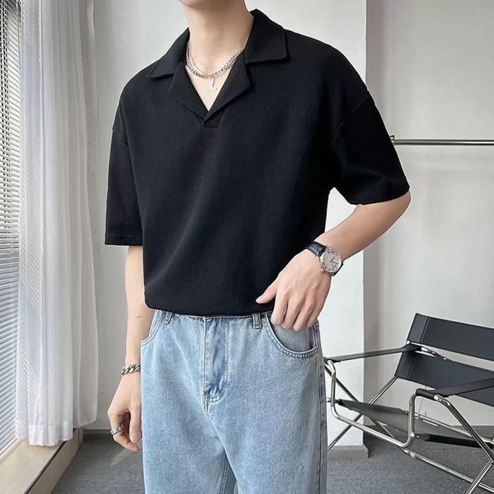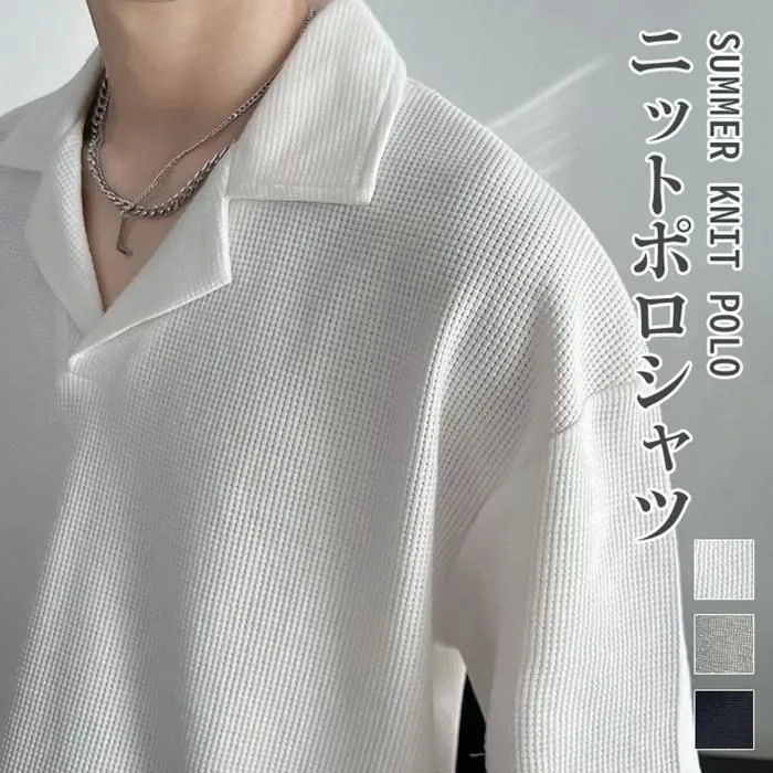 ニット ポロシャツ メンズ 半袖 カジュアル 薄手 無地 ゆったり Tシャツ 夏