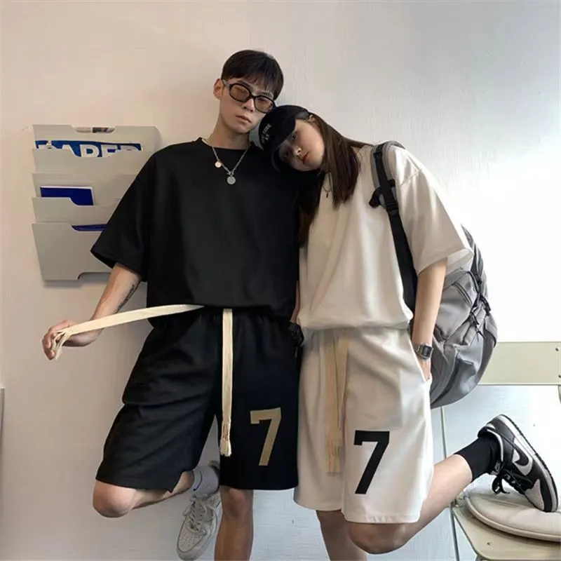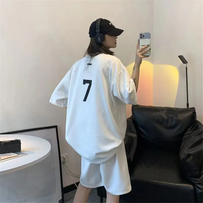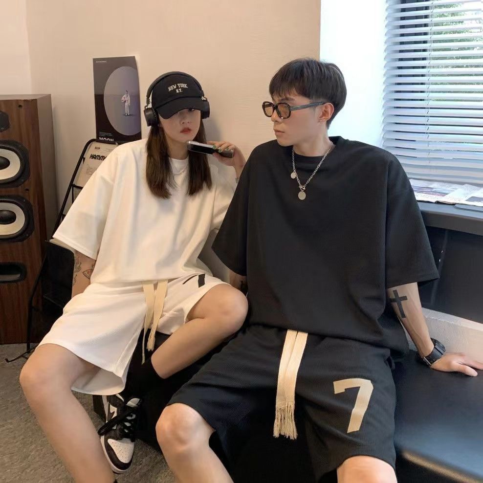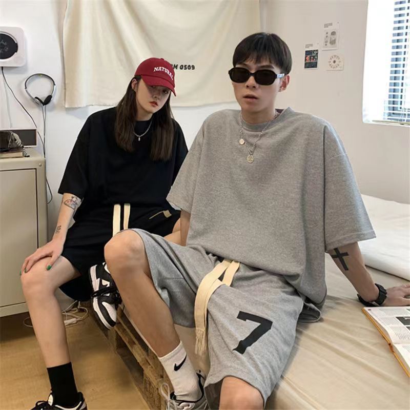 Tシャツ ハーフパンツ セットアップ 上下セット メンズ 男女兼用 ゆったり プリント 半袖 夏 韓国 ファッション ビッグTシャツ ショートパンツ ルームウェア 部屋着 運動着 ストリート ダンス