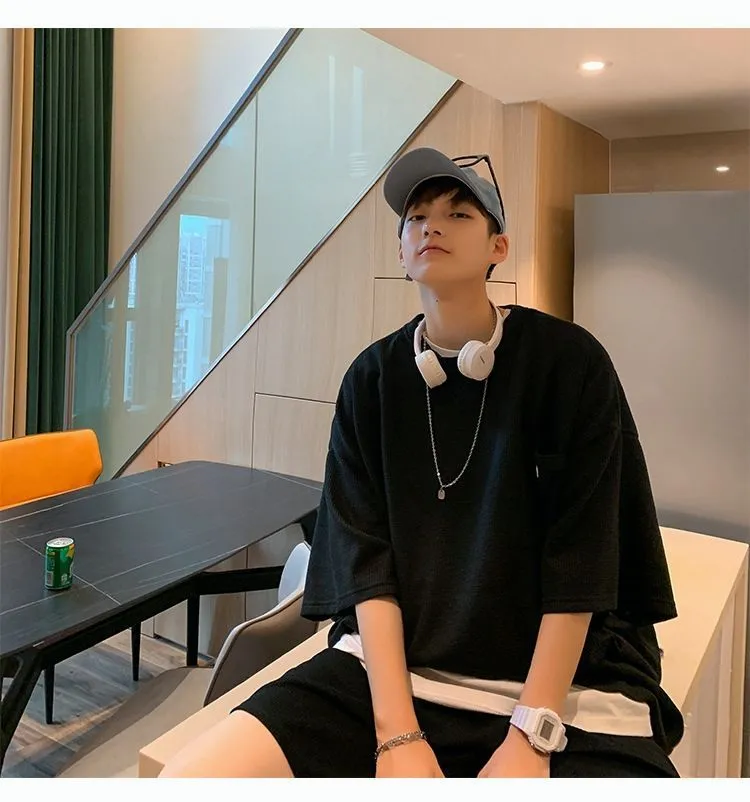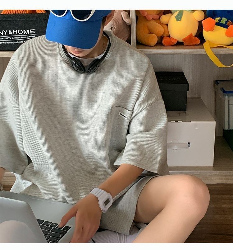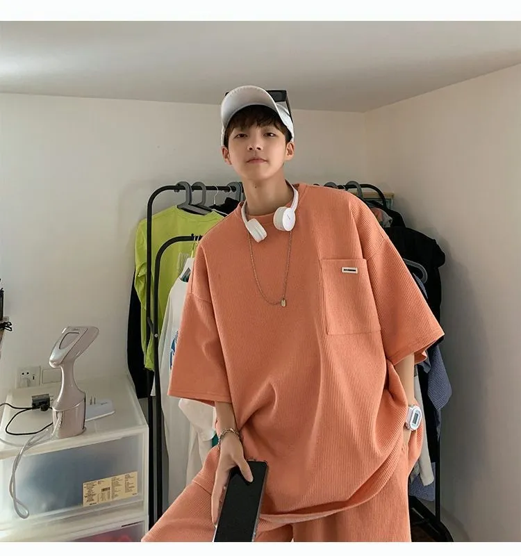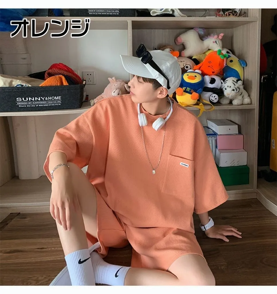 メンズ 上下セット セットアップ 半袖Tシャツ ハーフパンツ ショートパンツ トップス ボトムス ワッフル生地 ルームウェア 部屋着 普段着 カジュアル おしゃれ メンズ服 メンズファッション 夏 サマー 夏服