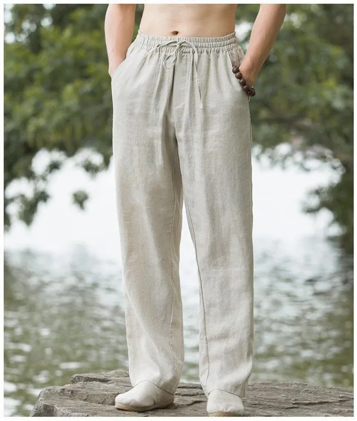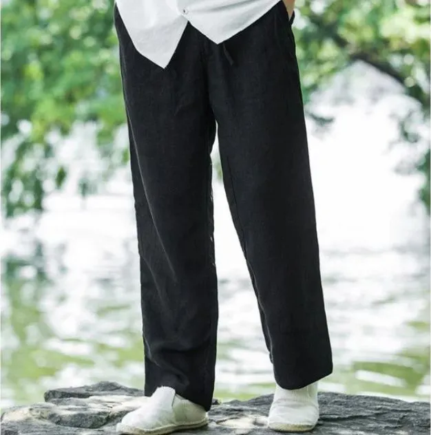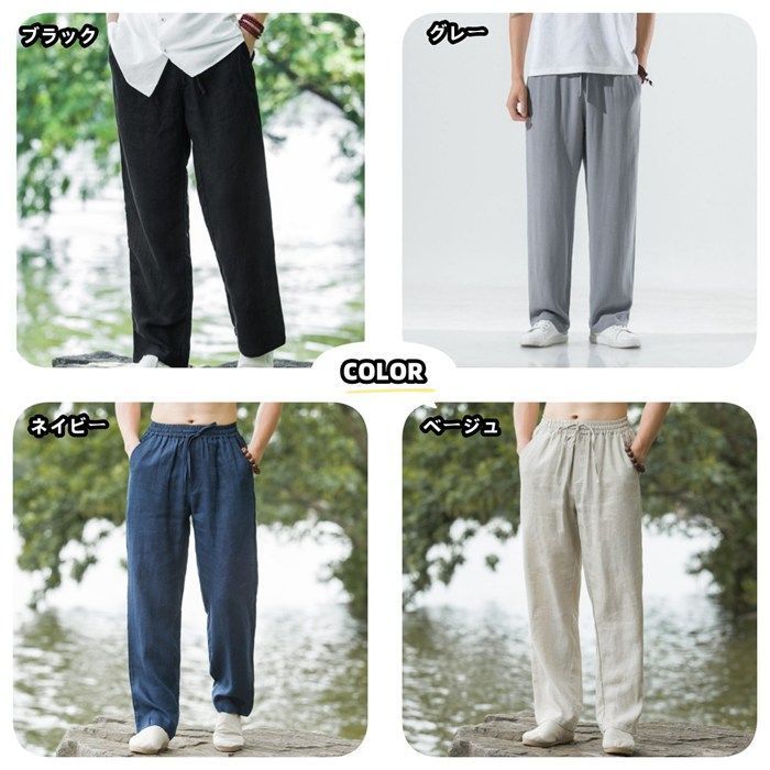 パンツ メンズ ロングパンツ ワイドパンツ 綿麻風 ウエストゴム ガウチョパンツ イージパンツ ボトムス 無地 シンプル カジュアル おしゃれ かっこいい 春 夏 秋 薄手 メンズファッション