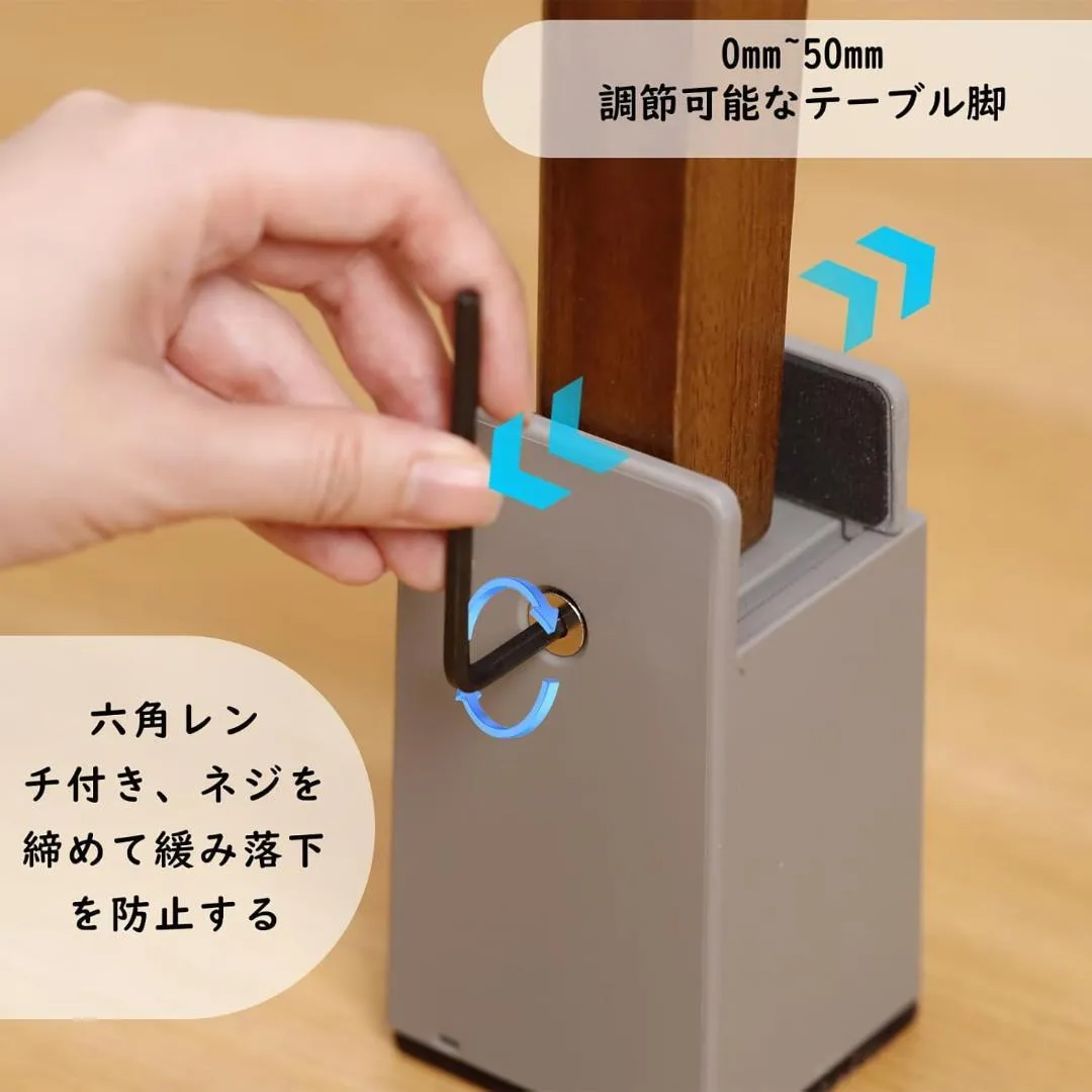 継ぎ足し テーブル 脚 こたつ 継ぎ足 机 高さ調整 0mm~50mm幅調節 4個セット机 たかさ調節 高さ5cm・10cm (グレー 高さ100mm)