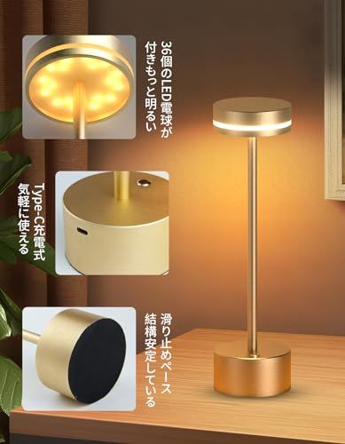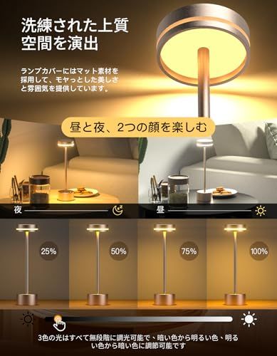 D★【新登場・3色ライト&無段階調光】間接照明 テーブルランプ コードレス おしゃれ 読書灯 LED 3色モード 無段階に調光 充電式 卓上ライト Type-C充電ケーブル メモリ機能 授乳 ナイト ベッドサイドランプ 寝室、バー、ダイニングテーブル、ベッドサ