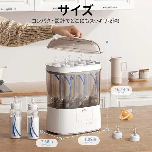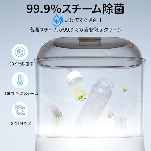 【99.9%の細菌を除去】:スチームで99.9%の細菌除去できます。HEPA フィルター搭載の温風で素早く乾燥させカビを防ぎ、内蔵フィルターで二次汚染ををブロック、ダブル除菌システムで哺乳瓶を徹底的に守ります。
