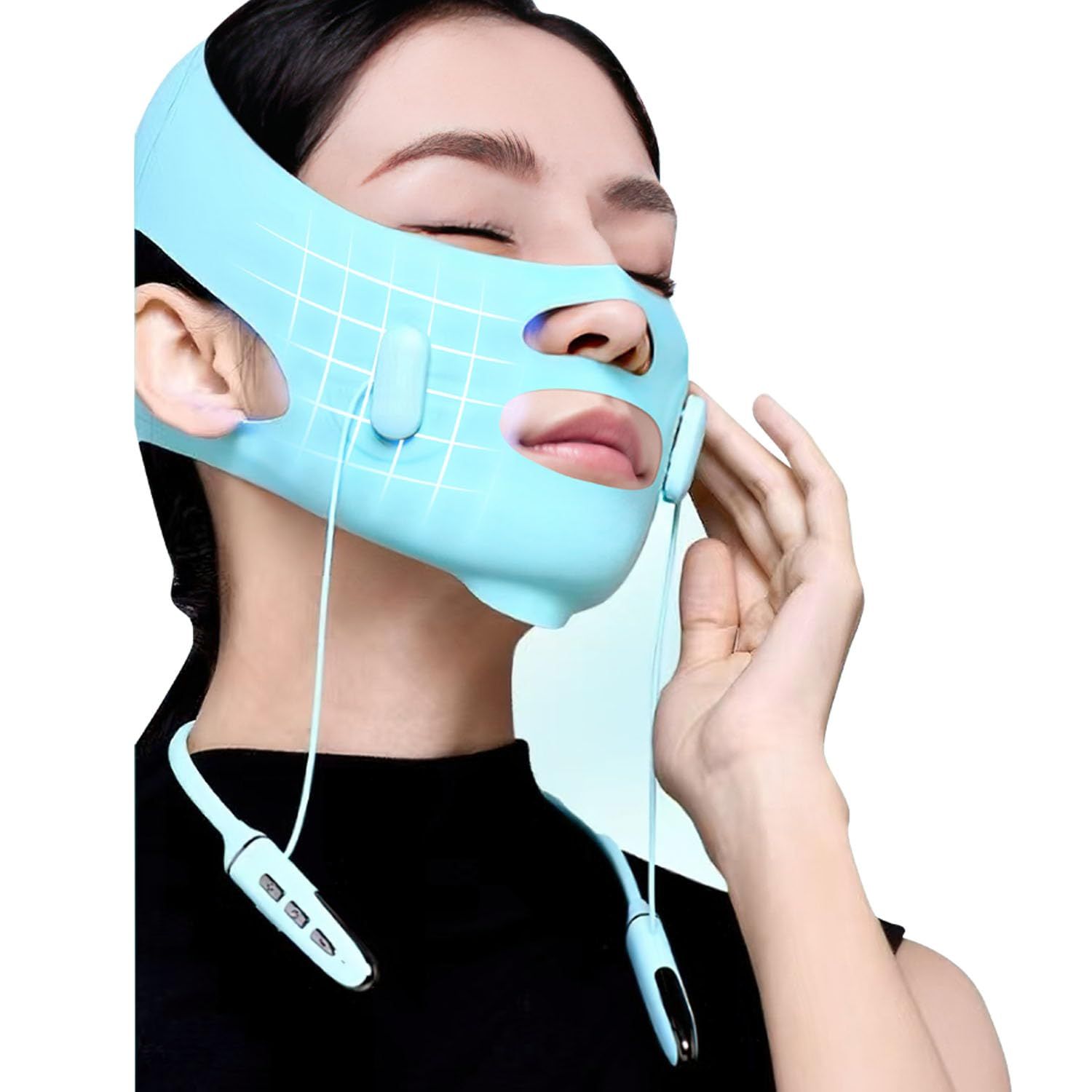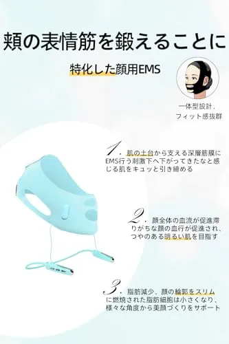 D★美顔器 ems 首掛け フェイスベルト V顔ベルト 小顔 9段階 4機能モード 自宅エステ 美容家電 通気性 高弾性 セルフ美容 日本語説明書 メーカー1年間品質保証