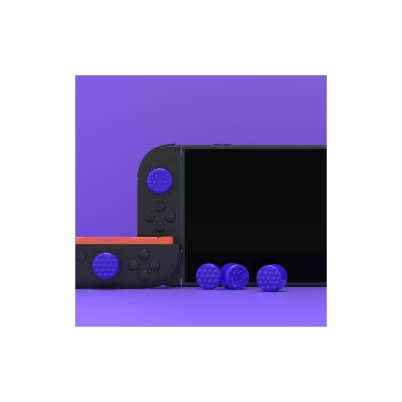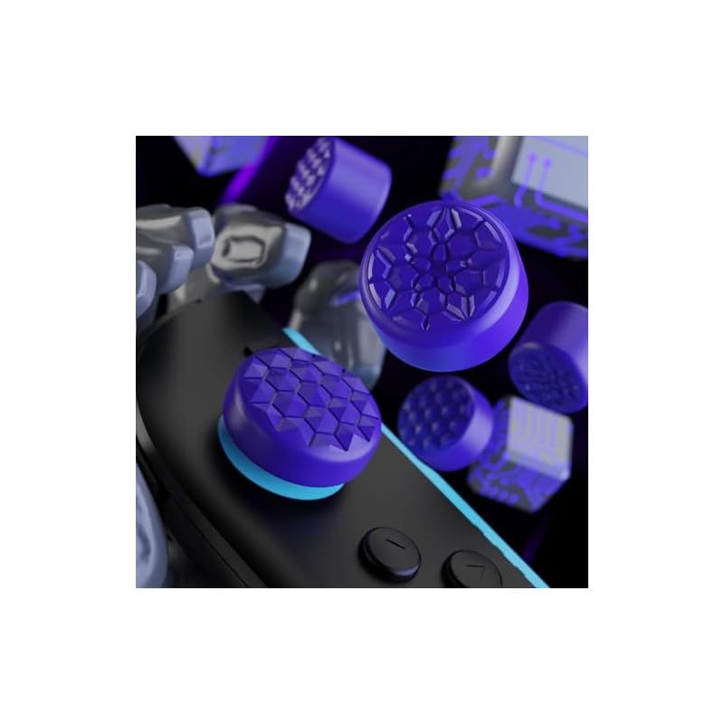 PlayVital QUANTUM Pro 2025年新型Switch 2対応用エルゴノミック親指グリップキャップ ?3段階高さ(凸型・凹型)調整対応 エイム精度向上 ダイヤモンドテクスチャ&クラックボムデザイン【パープル】 0