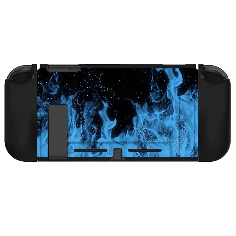 PlayVital スイッチに対応する保護ケース、Switchに対応用ソフトTPUスリムケースカバーカラフルなABXYボタンキャップ付き、パターンスタイル保護シェル【ブルーフレーム】 0