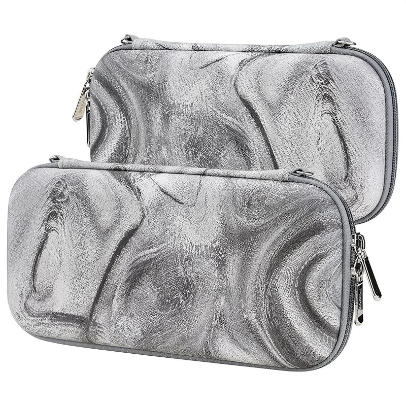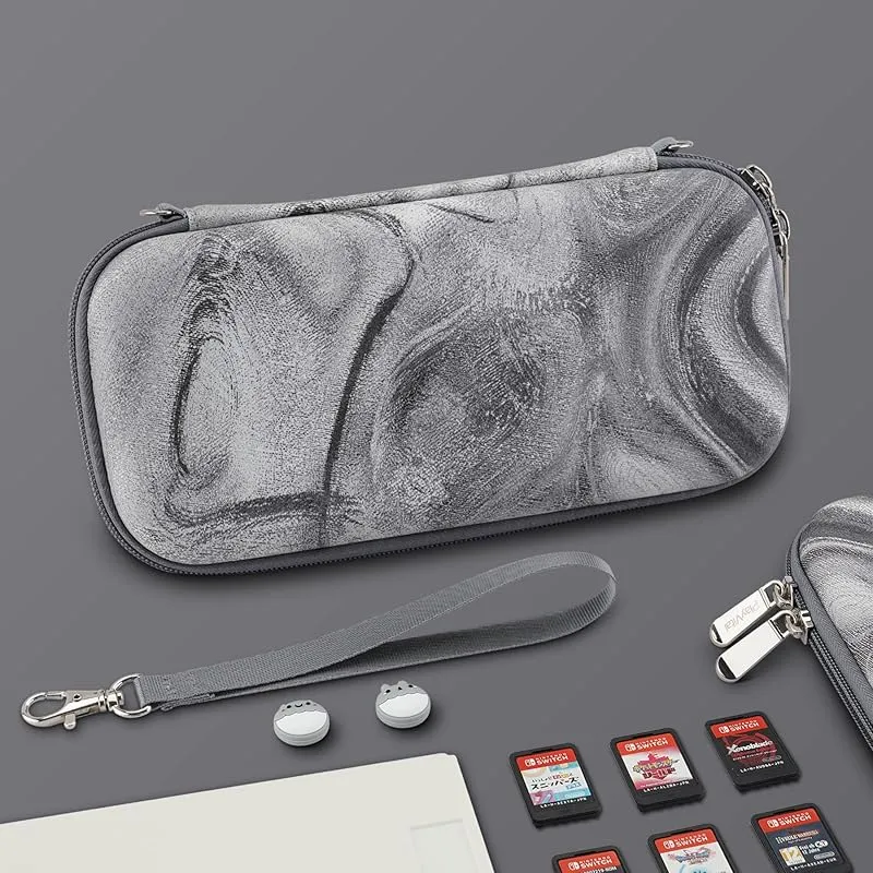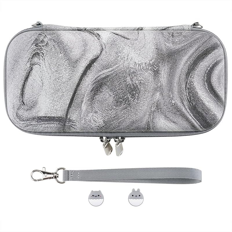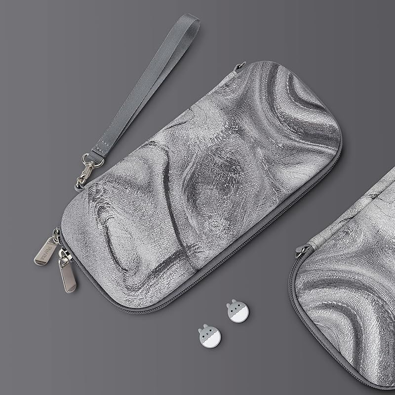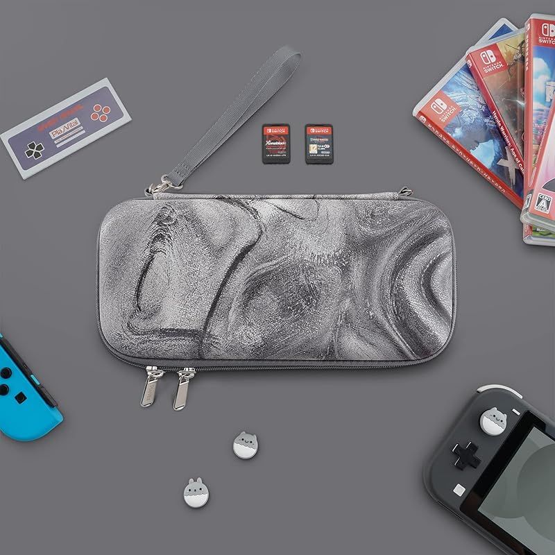 PlayVital Nintendo Switch Liteに対応用持ち運びケース、Switch lite対応用ポータブルポーチ収納ハンドバッグ、トラベルバッグ保護ハードケース、サムグリップキャップカバー&ゲームカードスロット10枚付き【シルバースワール】 0