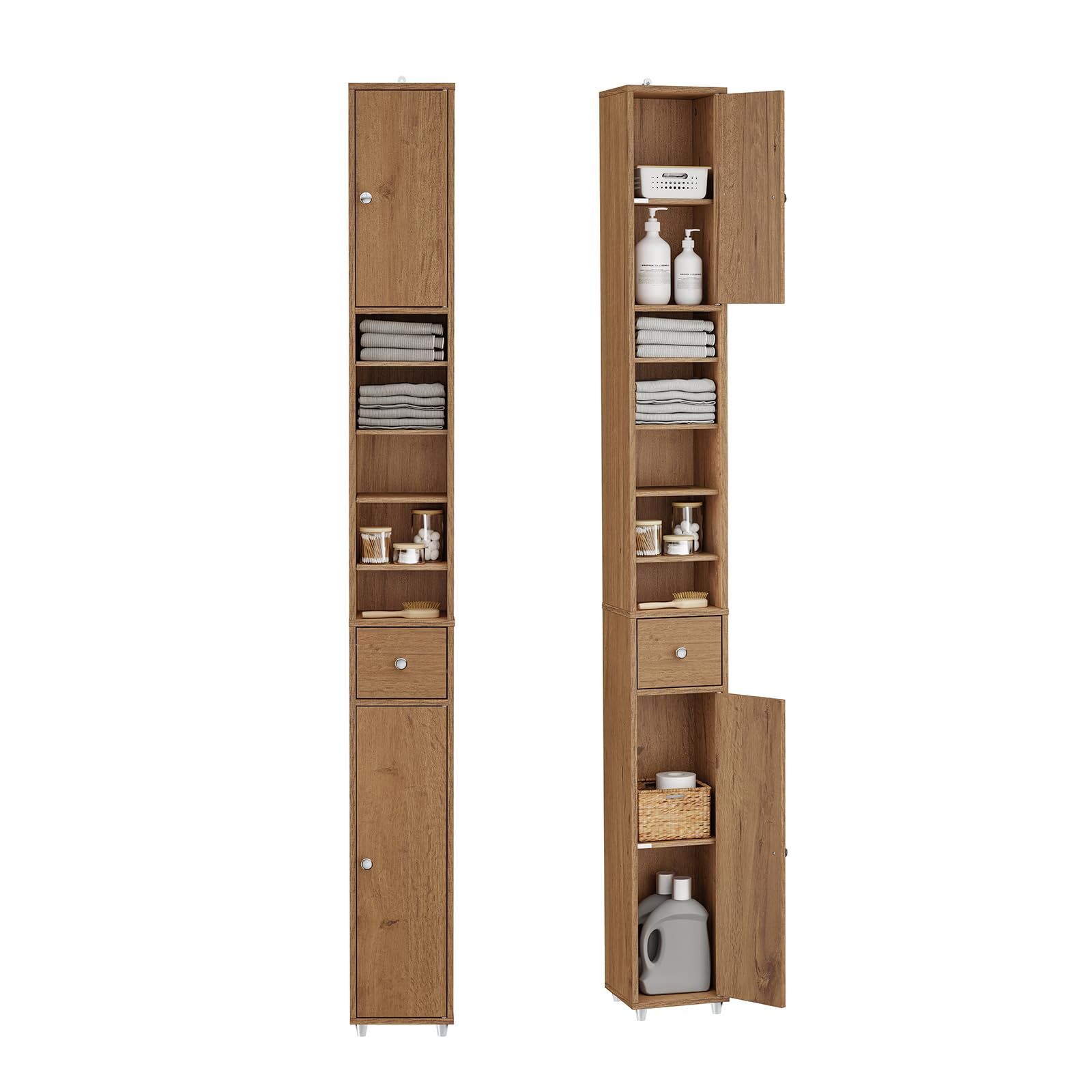 キャビネット ランドリー 収納 洗面所 サニタリーラック 洗面所用キャビネット すきま 可動棚 食器棚(BZR34-PF) 幅20*奥20*高さ180cm おしゃれ スリム ランドリーラック 隙間収納 SoBuy