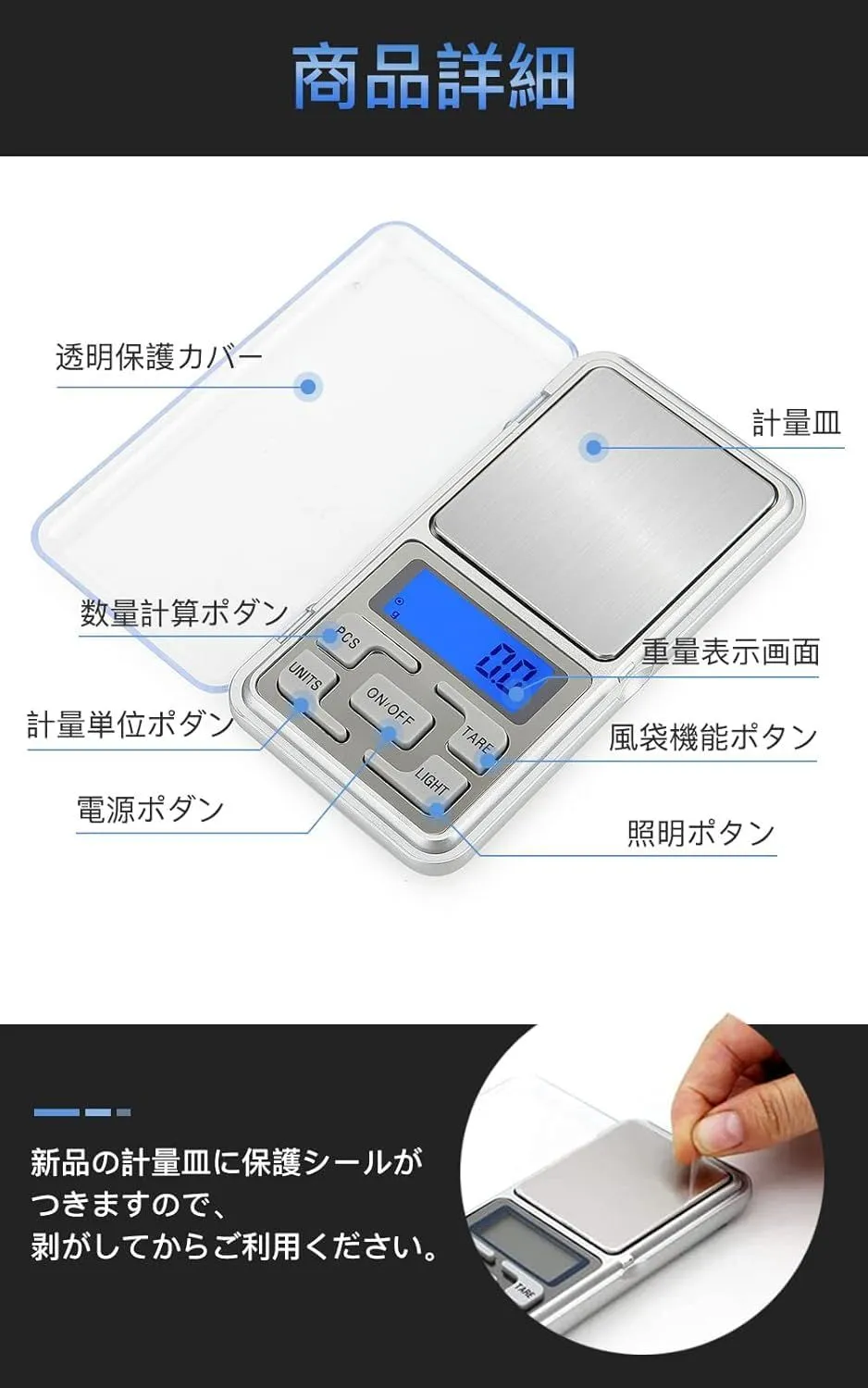 業務用 プロ用 デジタルスケール 精密 0.01g-500g 電子天秤 携帯タイプはかり (英語) ポケットデジタルスケール