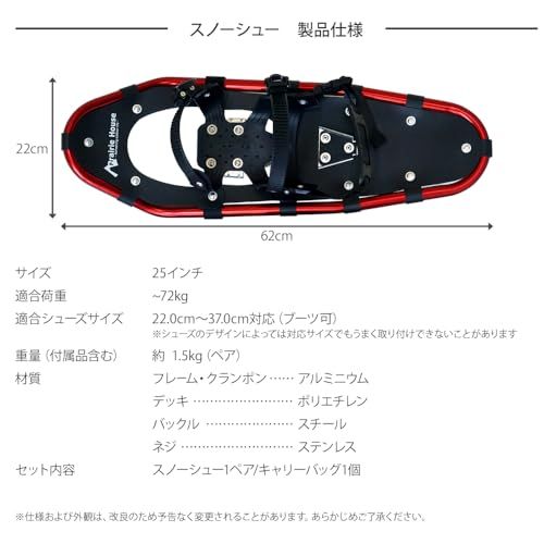 Prairie House スノーシュー 25インチ アルミ製 軽量 男女兼用 収納袋 氷上 雪山 登山 かんじき わかん 収納バッグ付きt