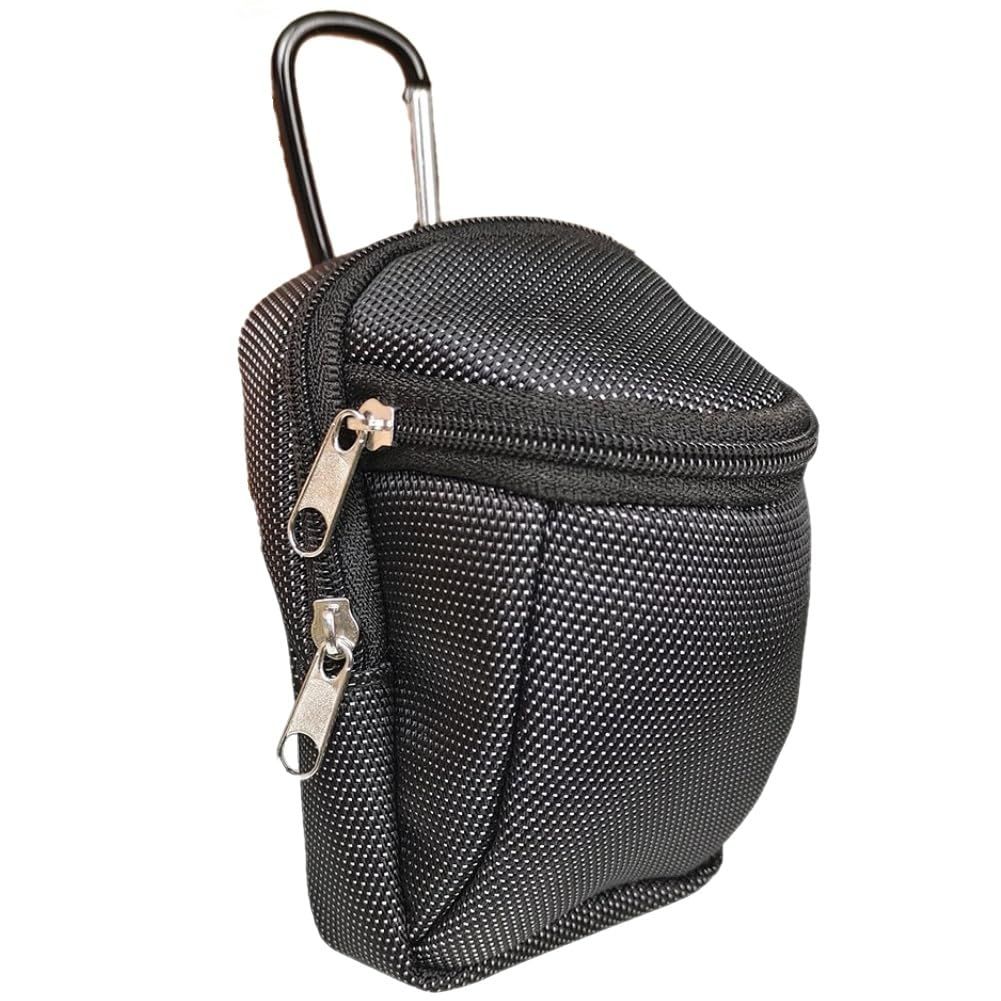 ボールケース 2個入れ用 ボールポーチ シンプル ゴルフ 腰 固定 ティ刺し付 (ブラック)